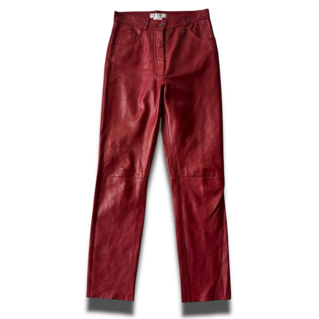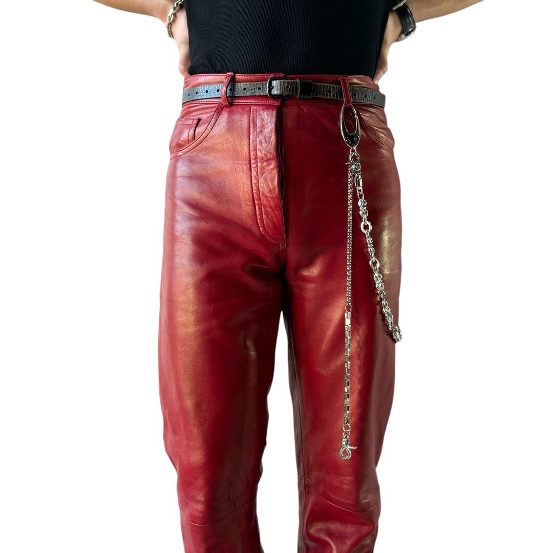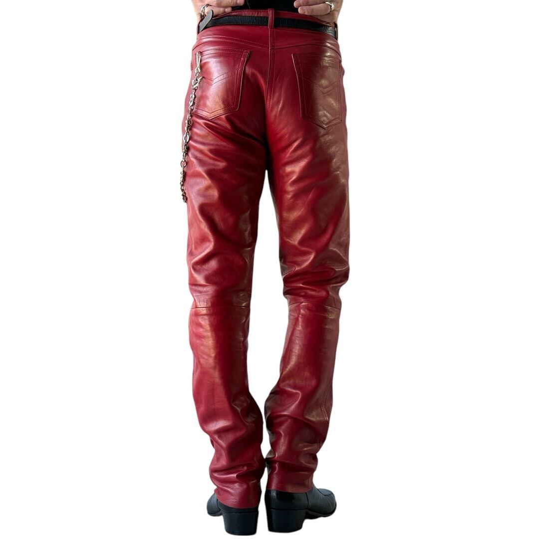 レザー特有の艶感に真紅のお色味ががバチバチにかっこいいレザーパンツ✨