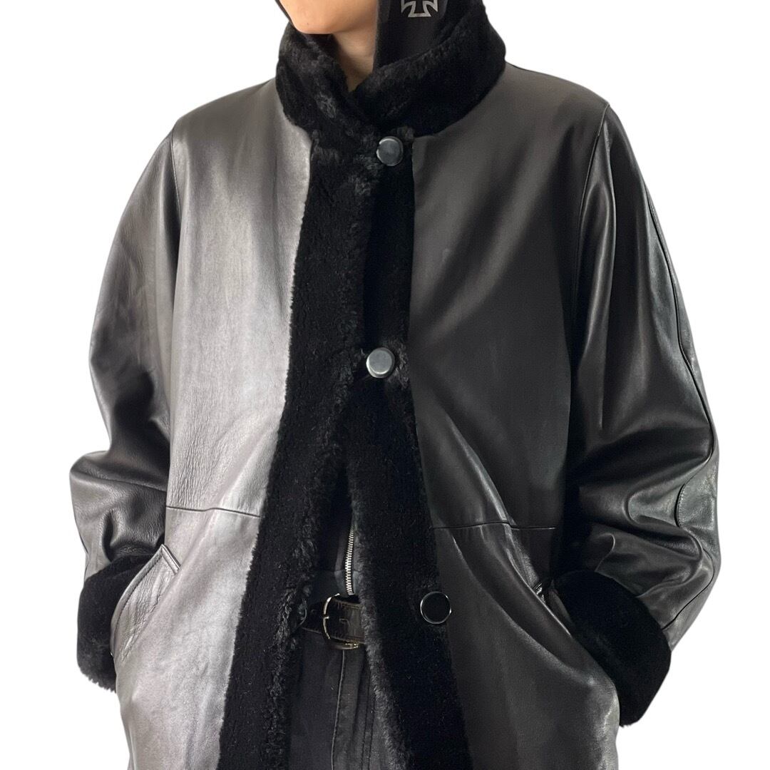 【J.PERCY FOR MARVIN RICHARDS】Faux fur Trim Long leather coat / -MADE IN U.S.A.-