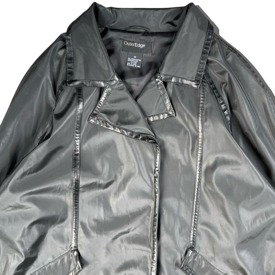 【Outer Edge】PU leather piping design coating coat