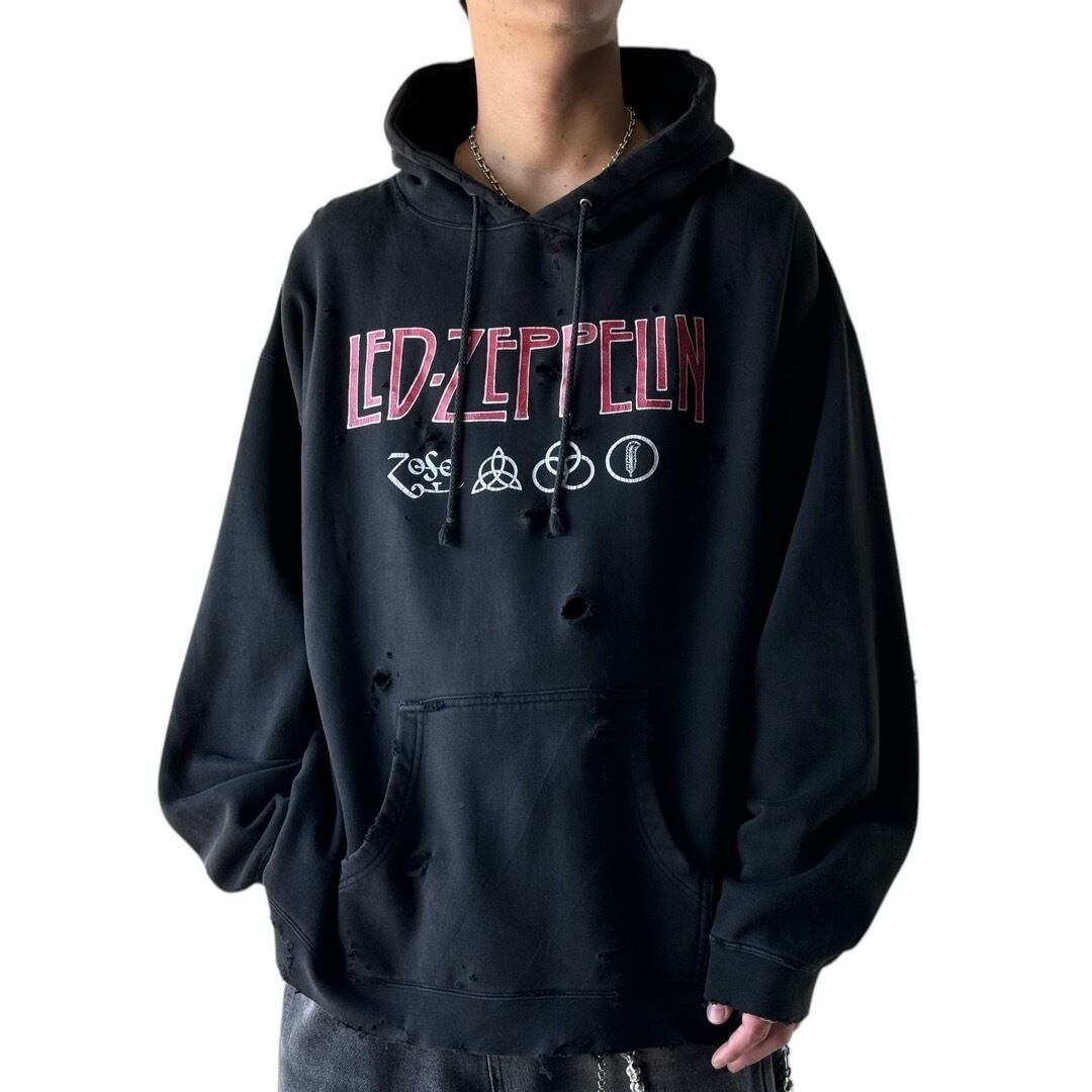 ♾LED ZEPPELIN♾ design crushed over sized pull over hoodie sizeXL ©︎2001