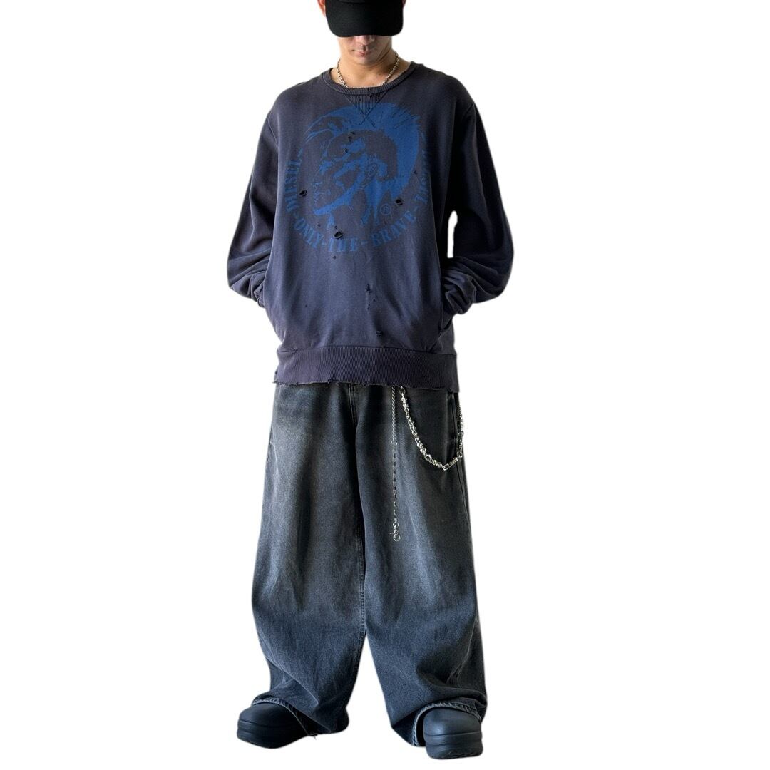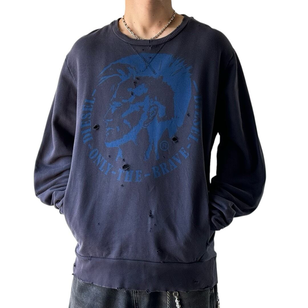 DISELと言えばのモヒカンデザインにハードめなダメージ加工を施したデザインスエット❗️