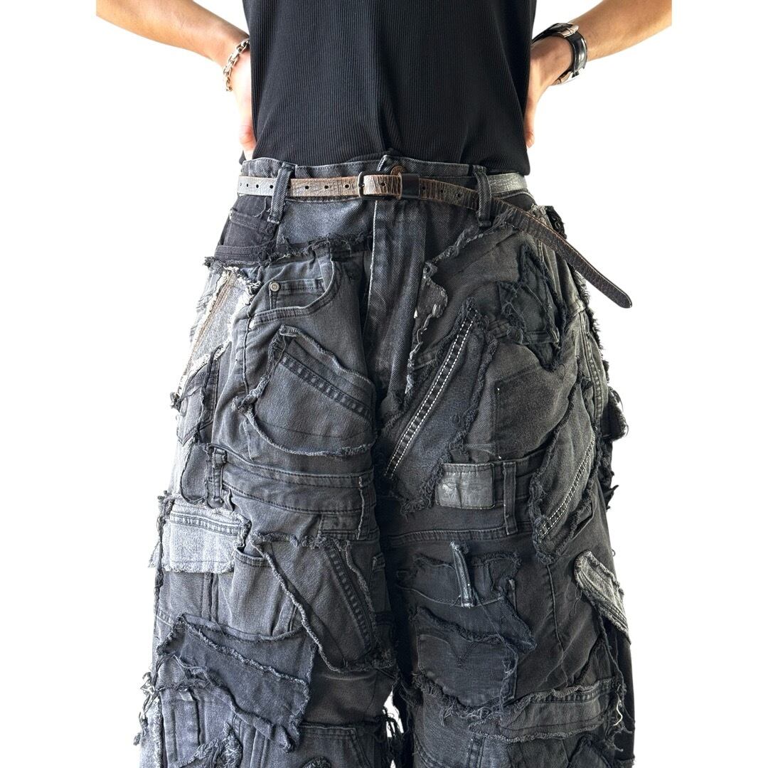 ♾REMAKE DESIGN USED♾ reconstruction custom mega wide black denim pants