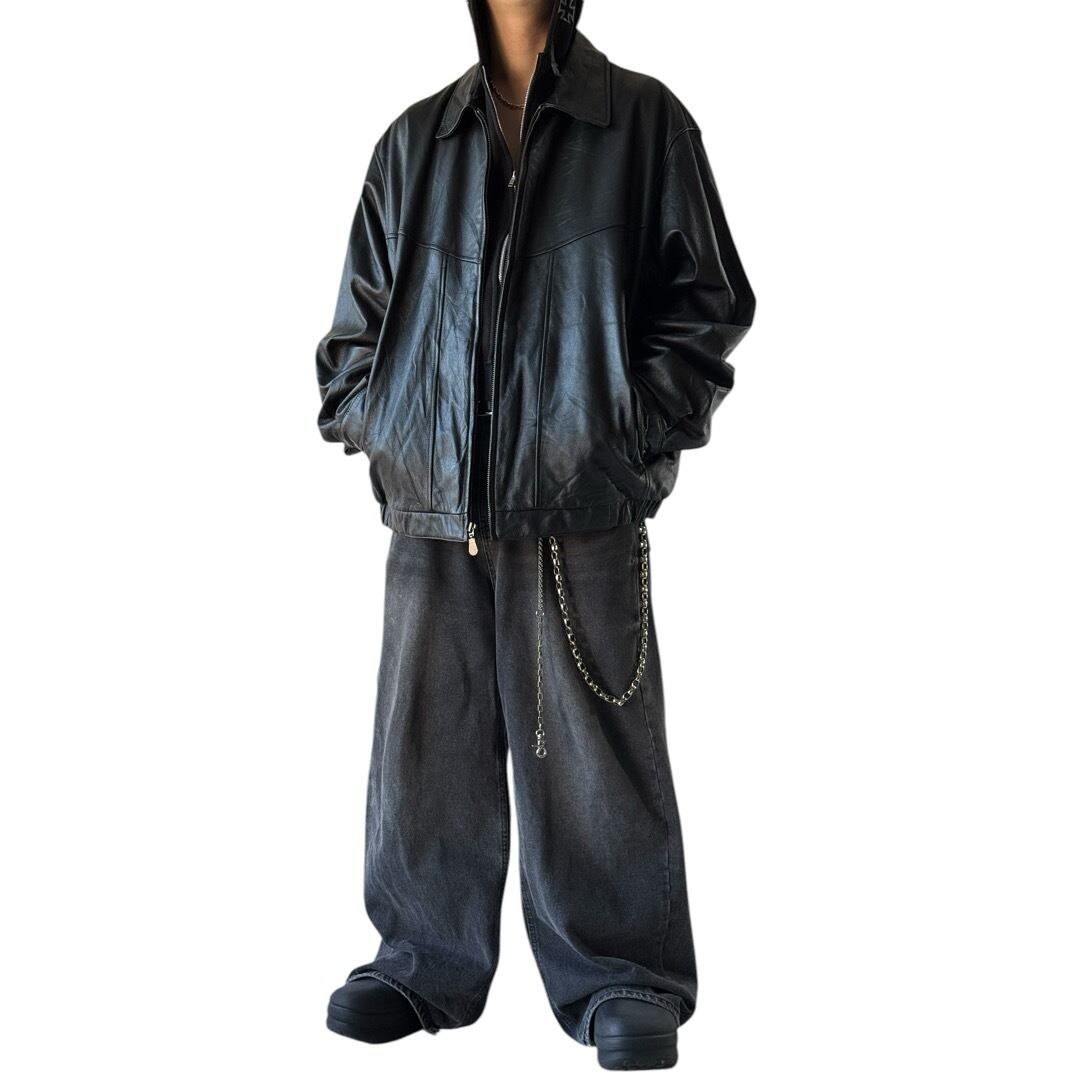 over size leather drizzler jacket