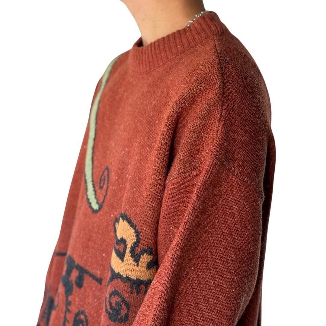 ヴィンテージニット特有の洒落た絶妙なボディの色味に映えるモチーフのグッド配色◎