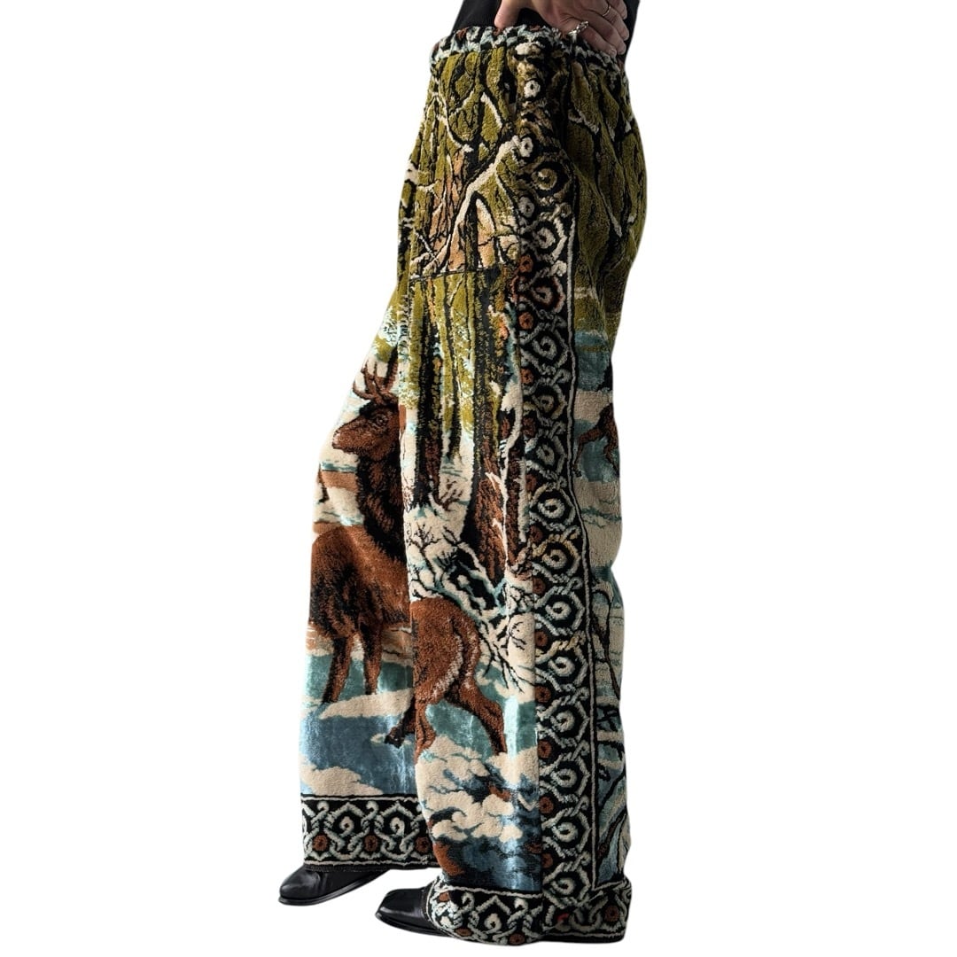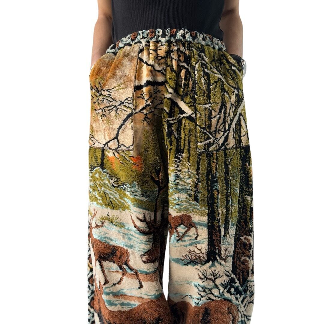 vintageのラグを大胆に繋ぎ合わせパンツへと生まれ変わったカスタムアイテム✨✨