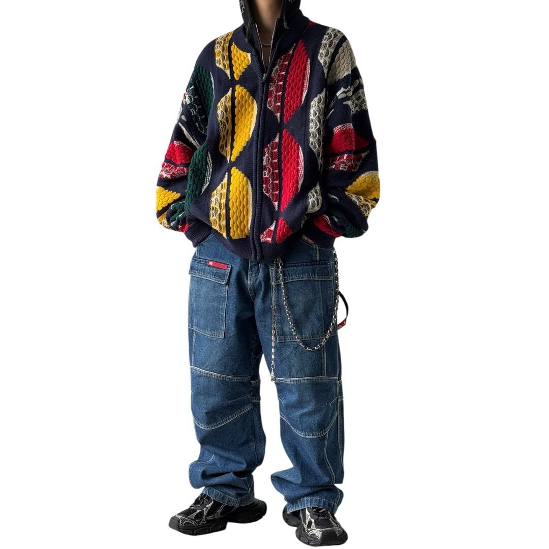 ♾️delf sweater♾️ design 3D pattern zip up knit blouson size XXL