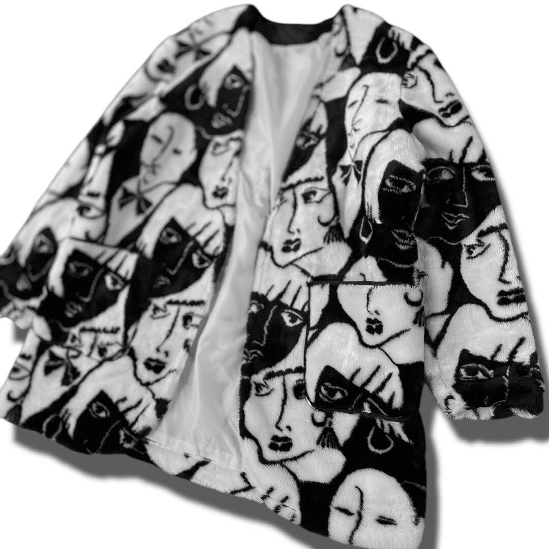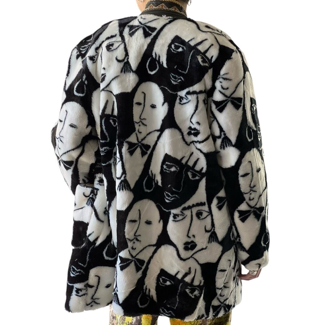 【Design used】Face pattern Faux fur jacket