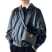 キャンパスのグレー×ブラックストライプスにレザー、ゴールドトーンのパーツが非常にラグジュアリー✨