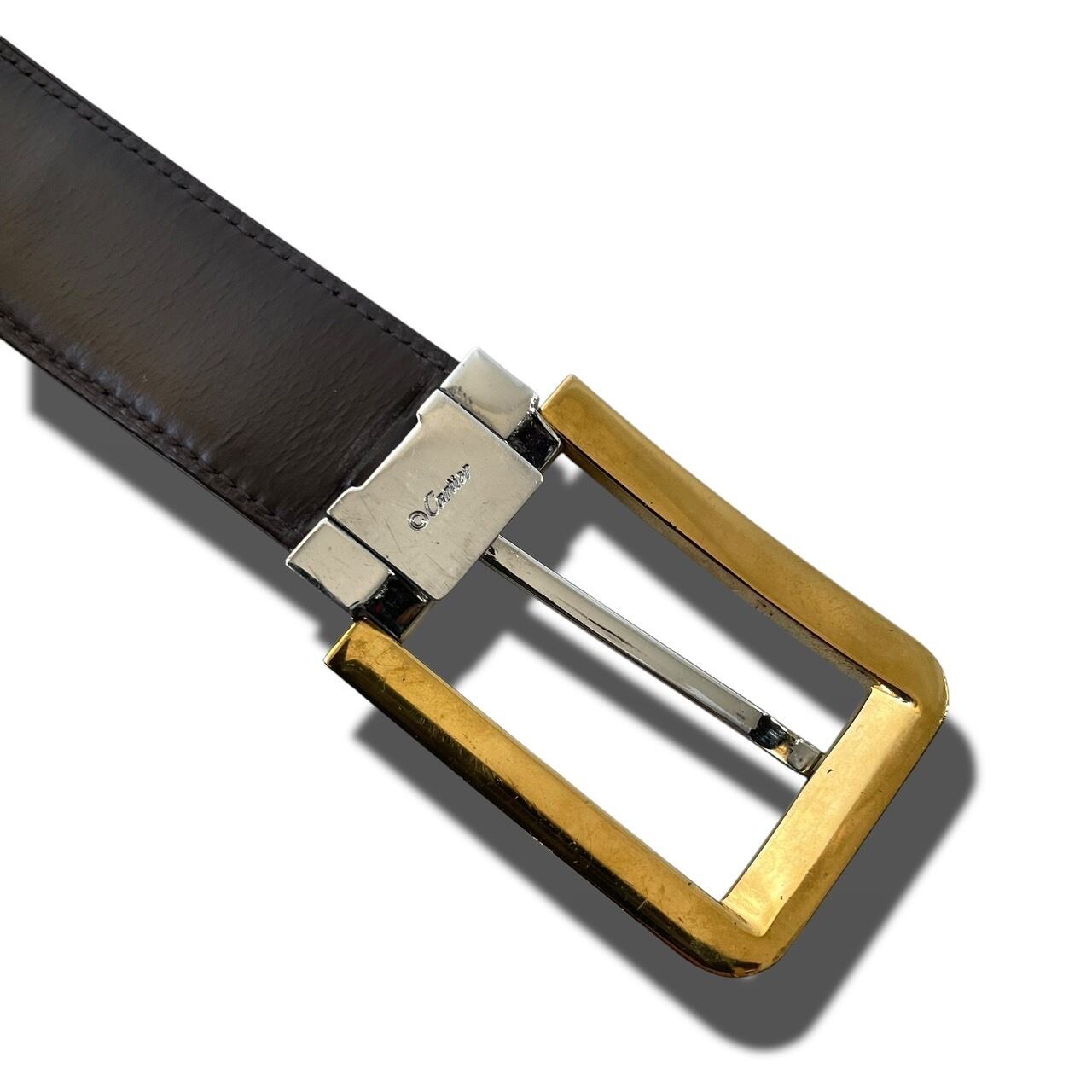 シルバーにゴールドを混ぜたメタルバックルにさりげなくブランドネームを刻印したシンプルなデザインが汎用性あるレザーベルト‼️