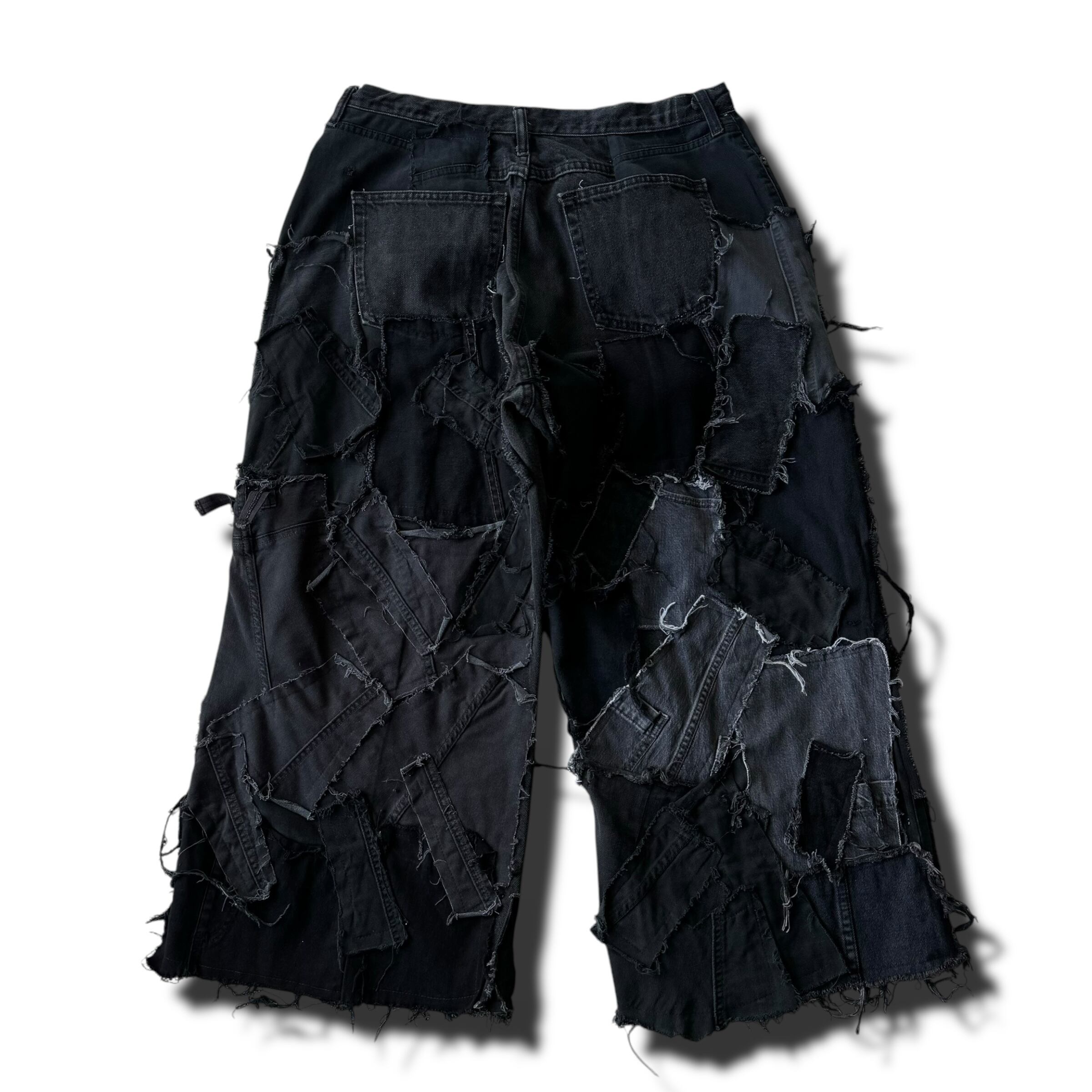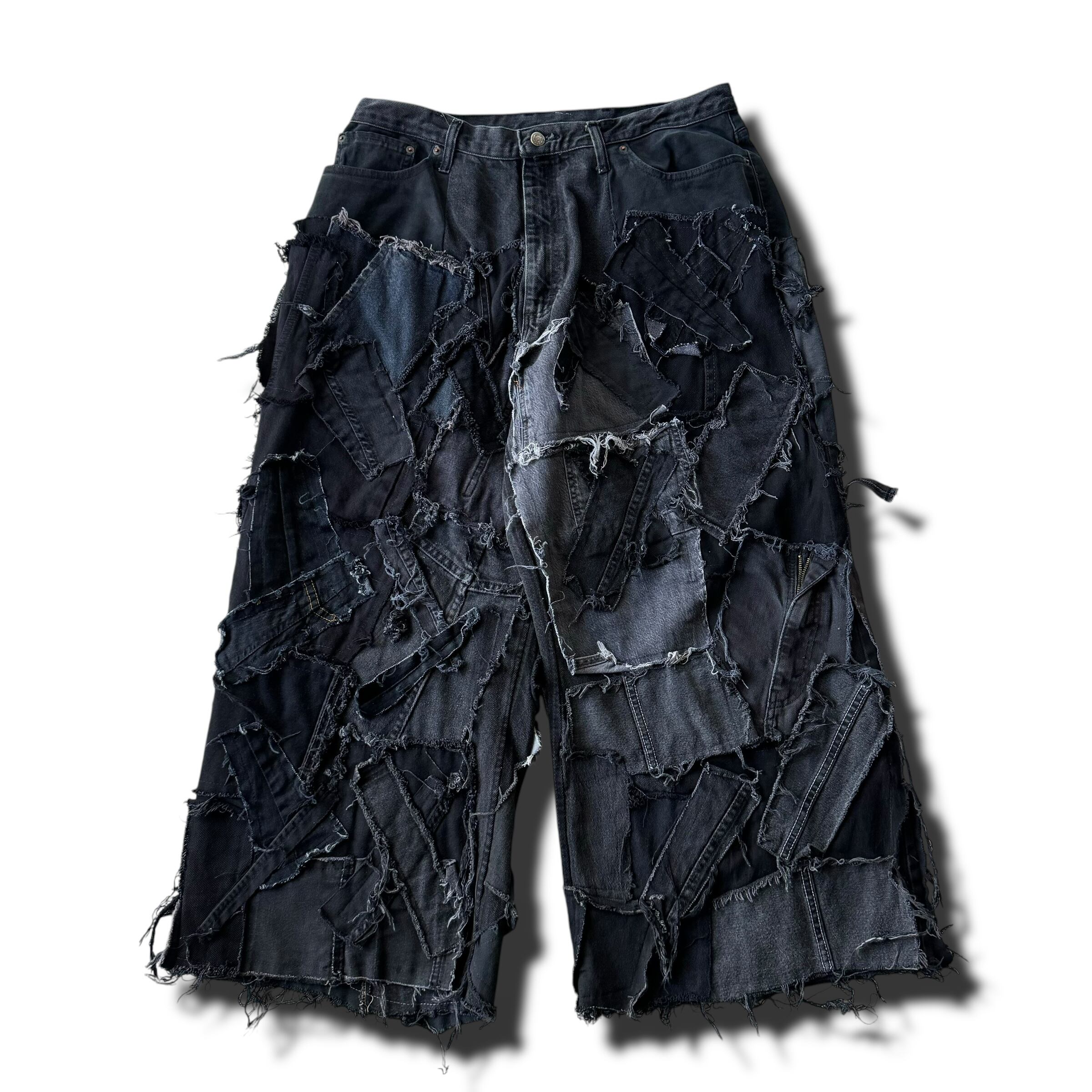 ♾REMAKE DESIGN USED♾ reconstruction custom mega wide black denim pants
