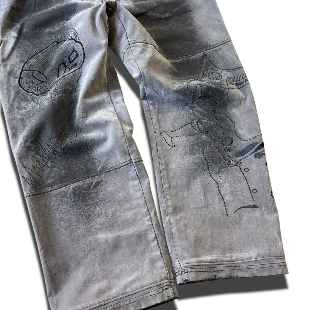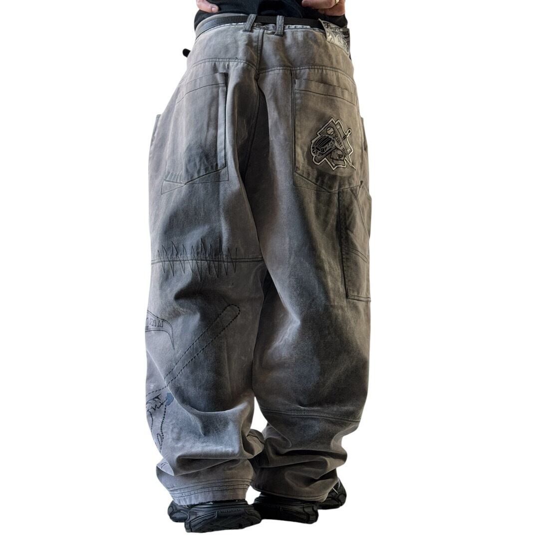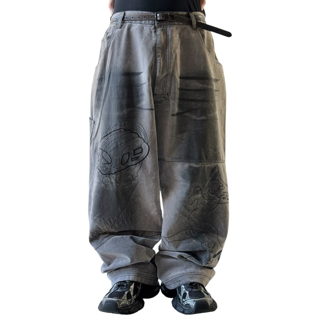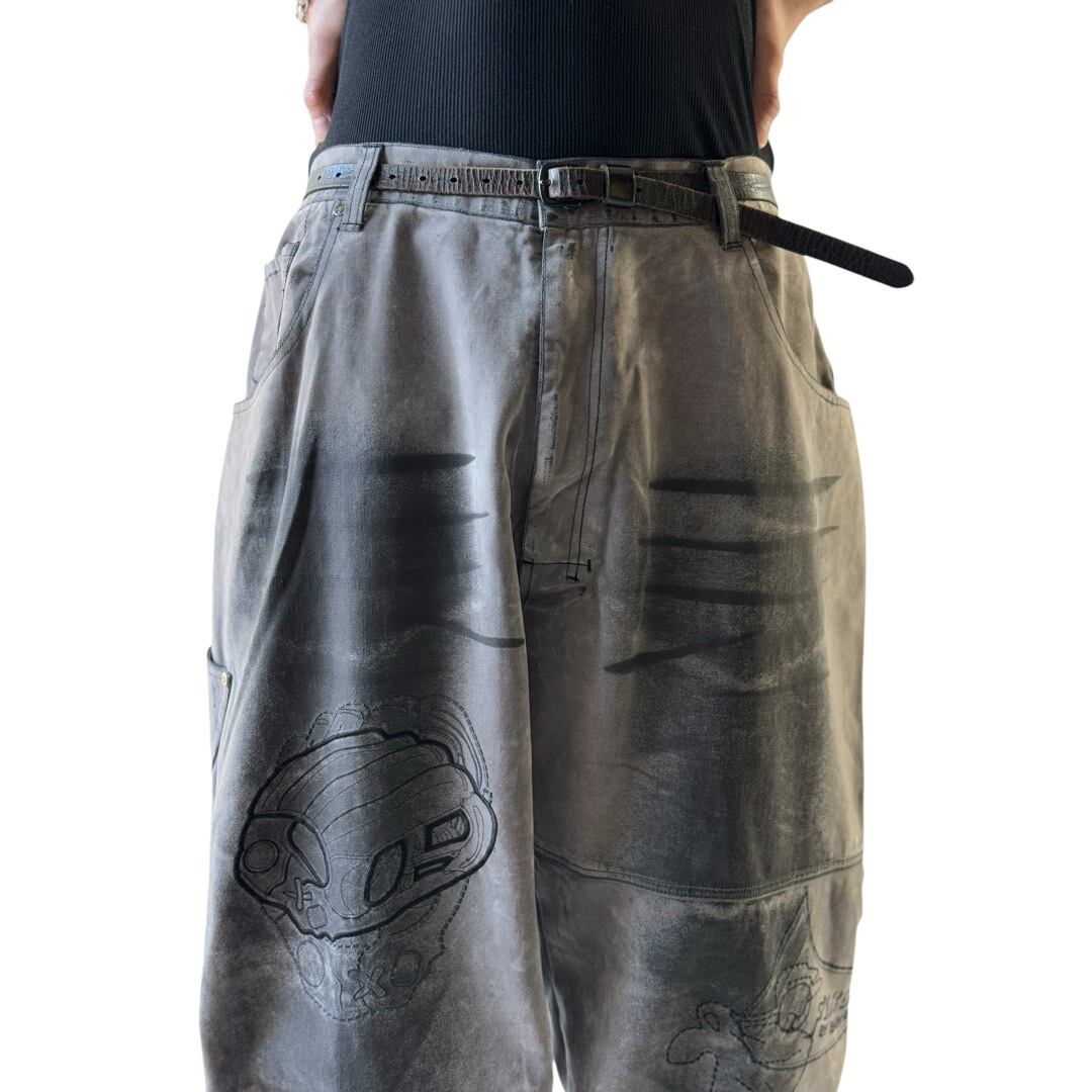 ベロアが剥がれて下地が見えているようなデザインも凝っておりクオリティの高いボトムス.