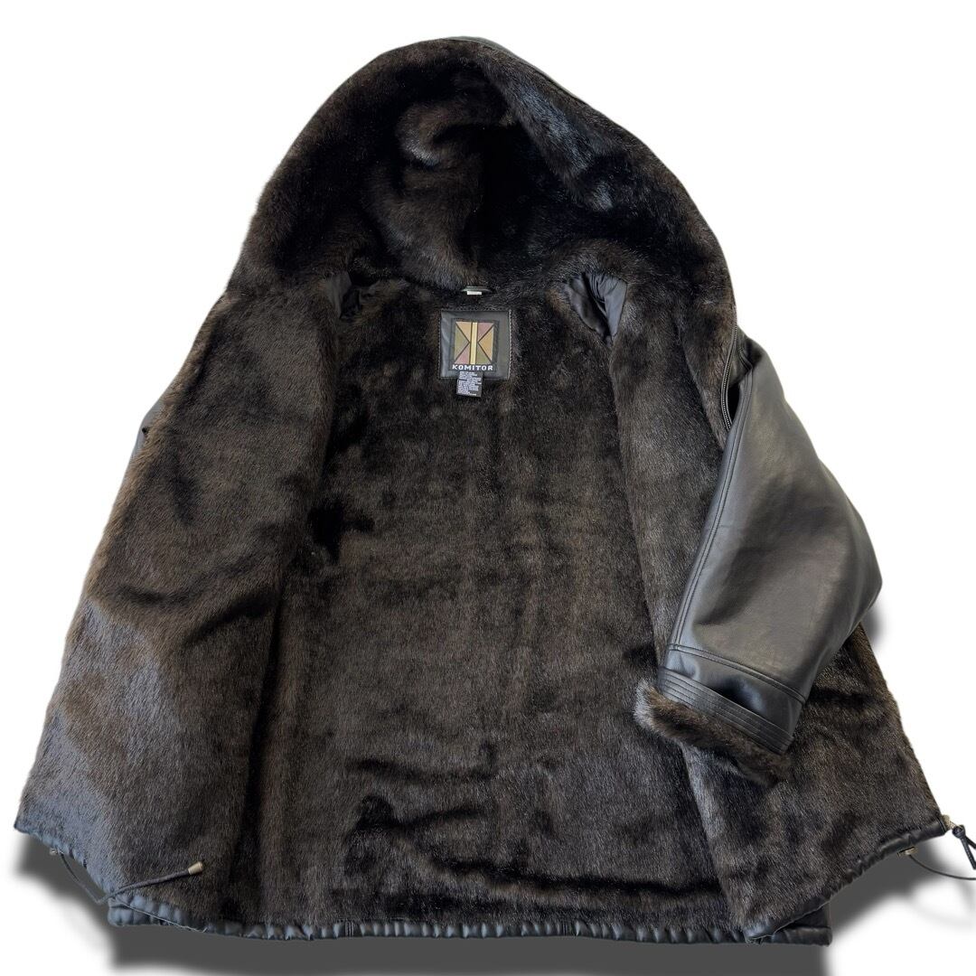 ♾️KOMITOR♾️ faux fur lining PU leather over size zip up hoodie