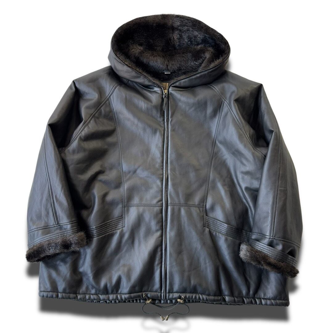裏地にフェイクファーを纏ったPUレザーオーバージップフーディ✨