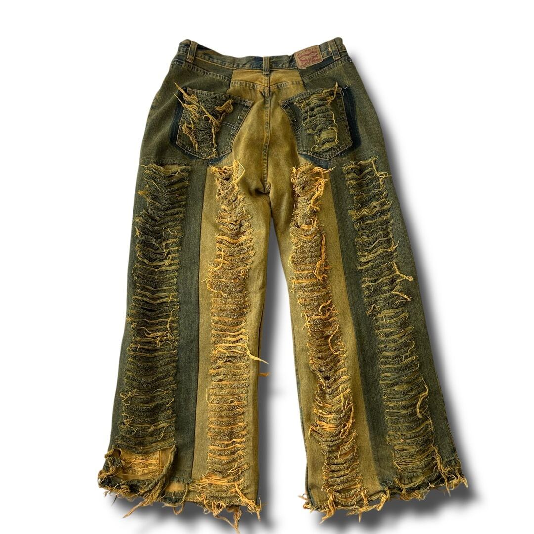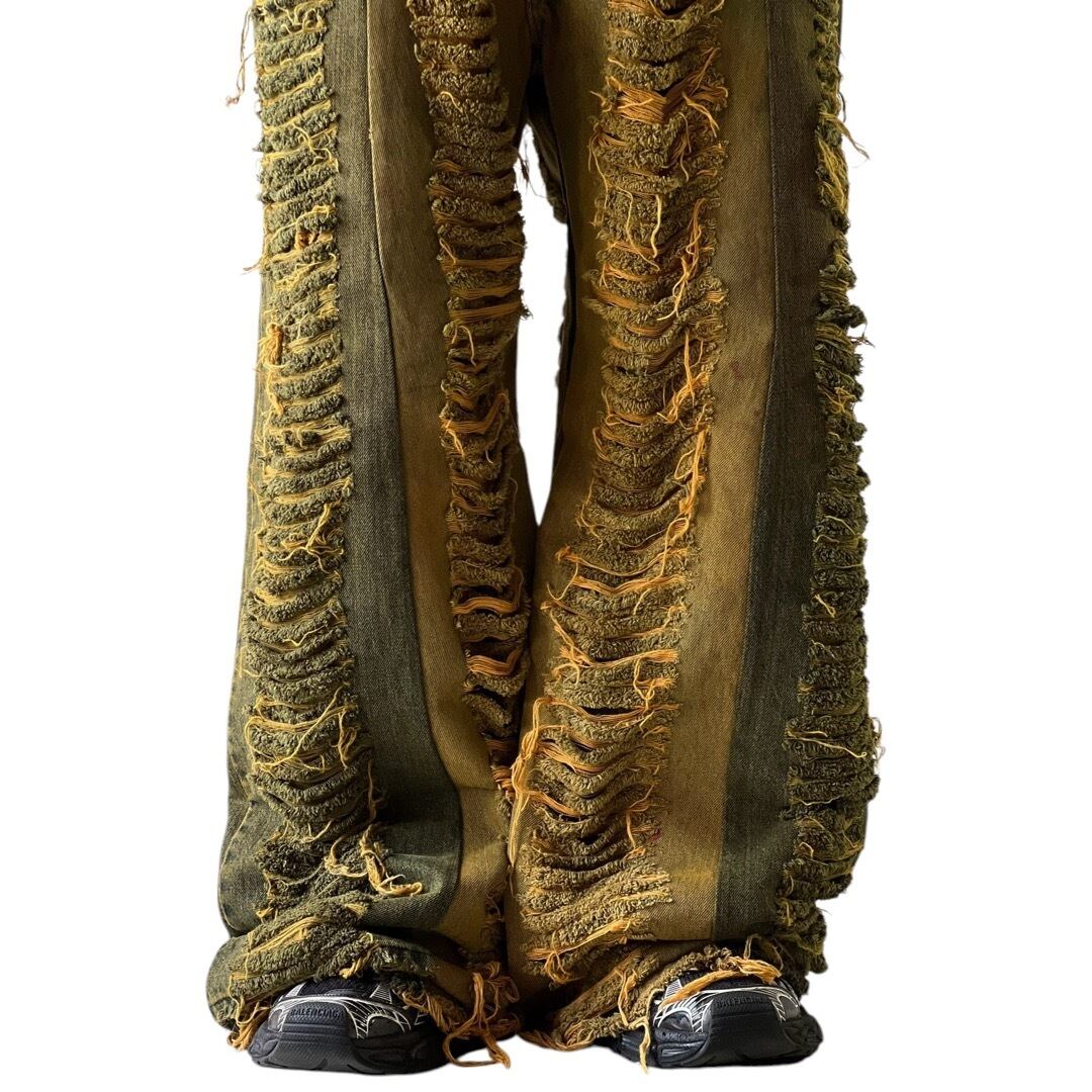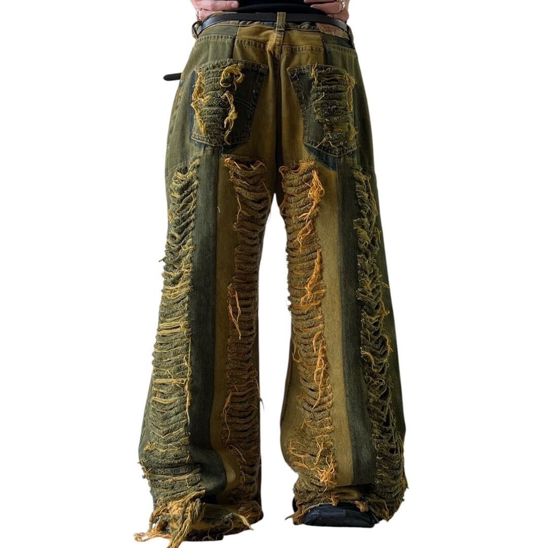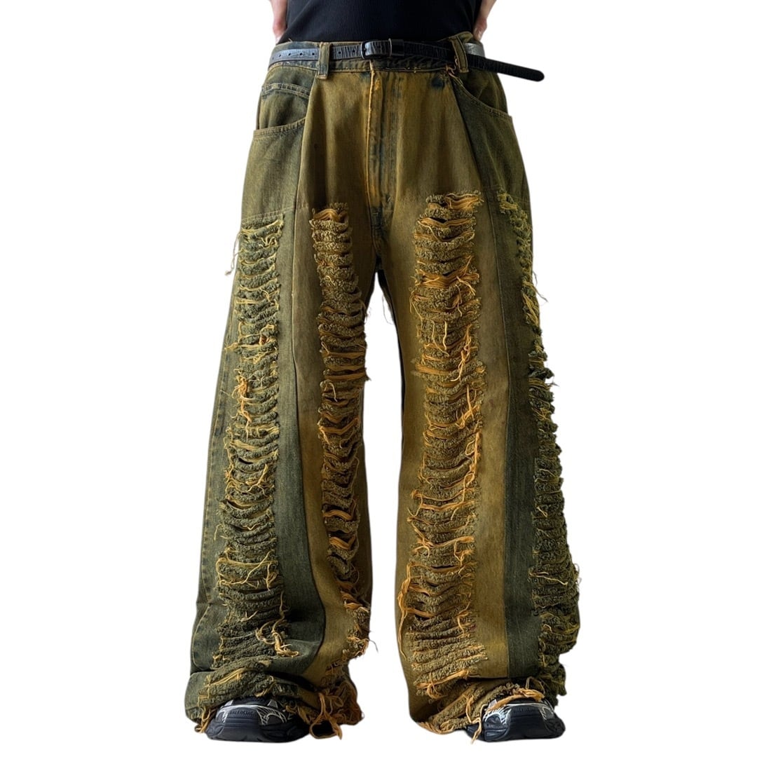 【REMAKE DESIGN USED】 "Double face Damage design, Custom wide silhouette denim pants
