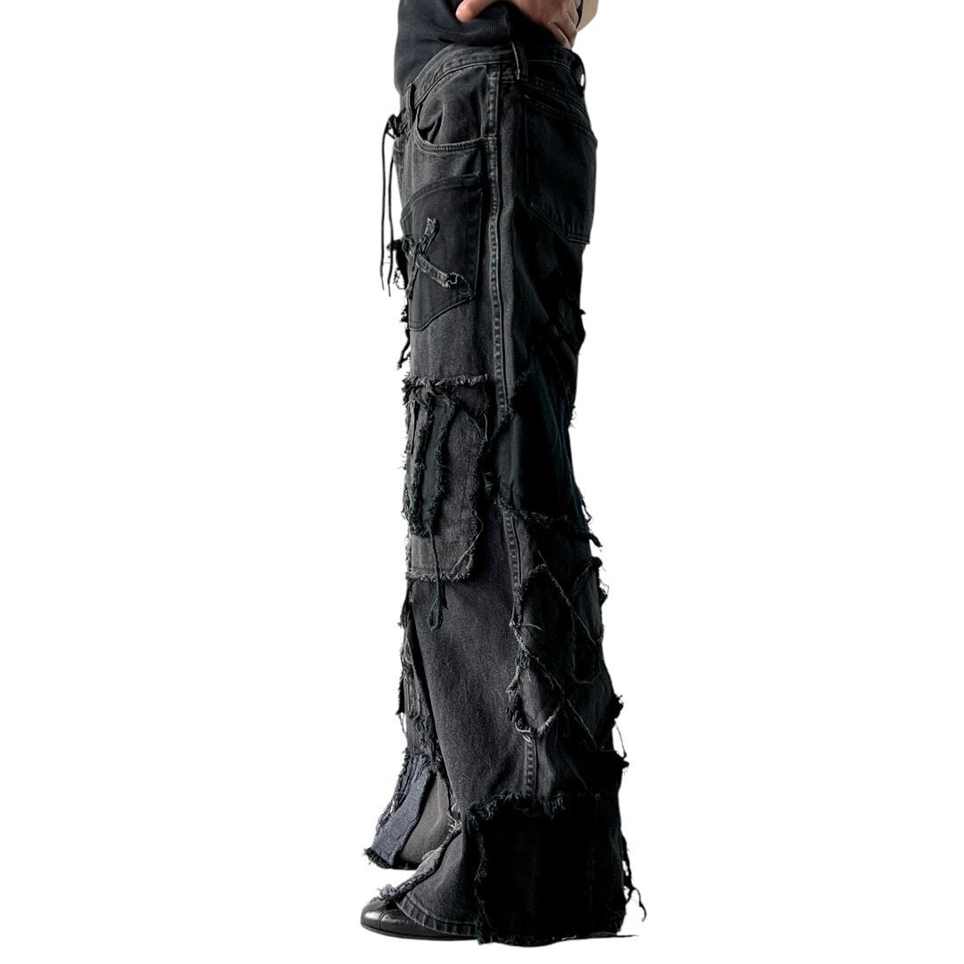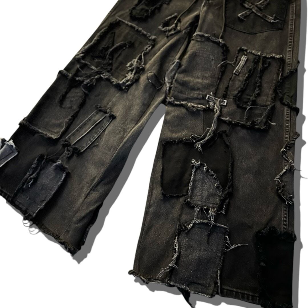 【REMAKE DESIGN USED】 Reconstruction Custom wide black denim pants
