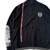 ブラックのニットにテープロゴ、袖にはパッチとバランスの取れたデザイン◎