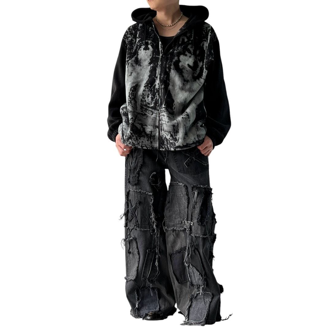 【ANCDERSON】Wolf pattern fleece fabric fullzip hoodie