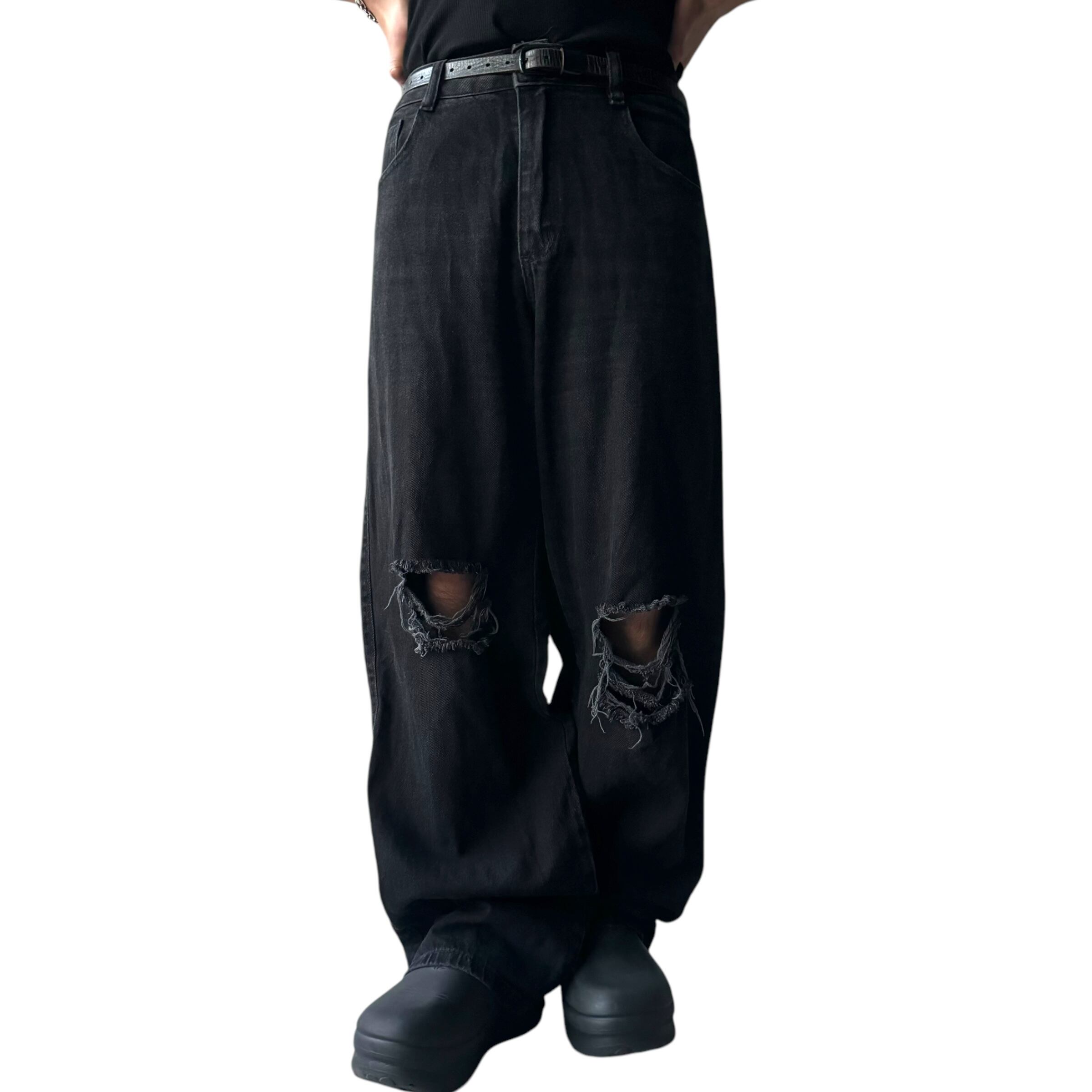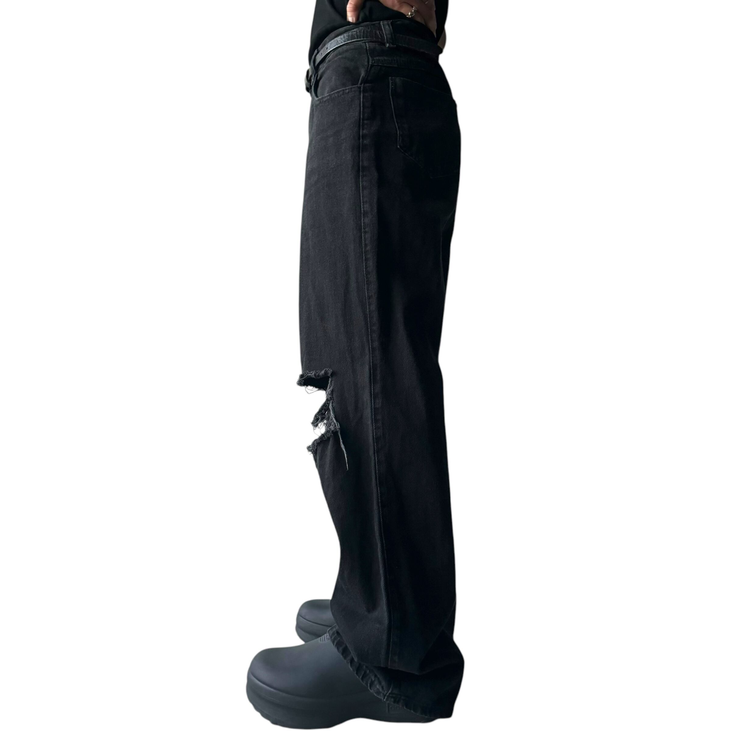 ♾Saint Elian jeans♾ design crushed wide black denim pants
