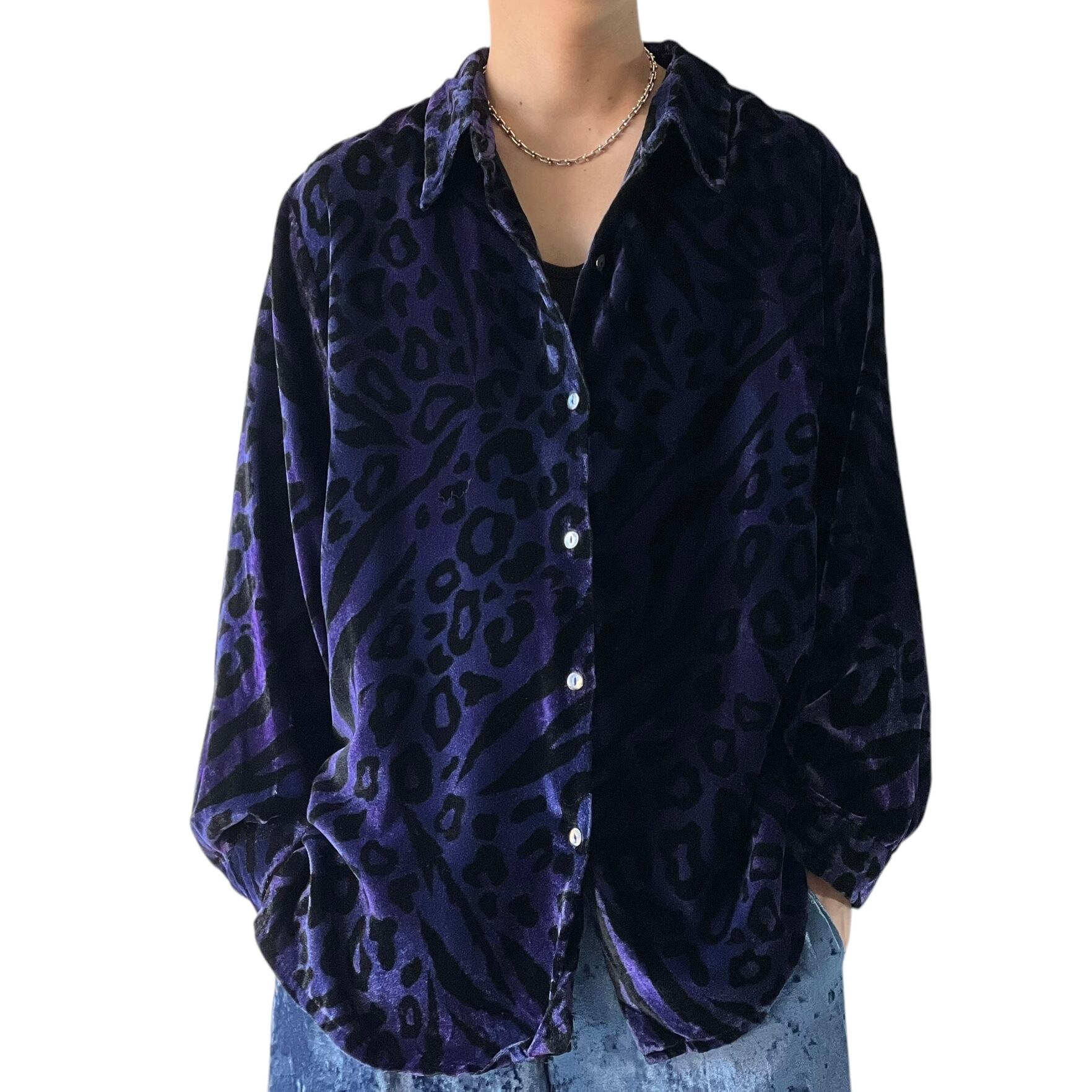 【DENIM&CO.】 animal pattern Rayon Velvet shirt