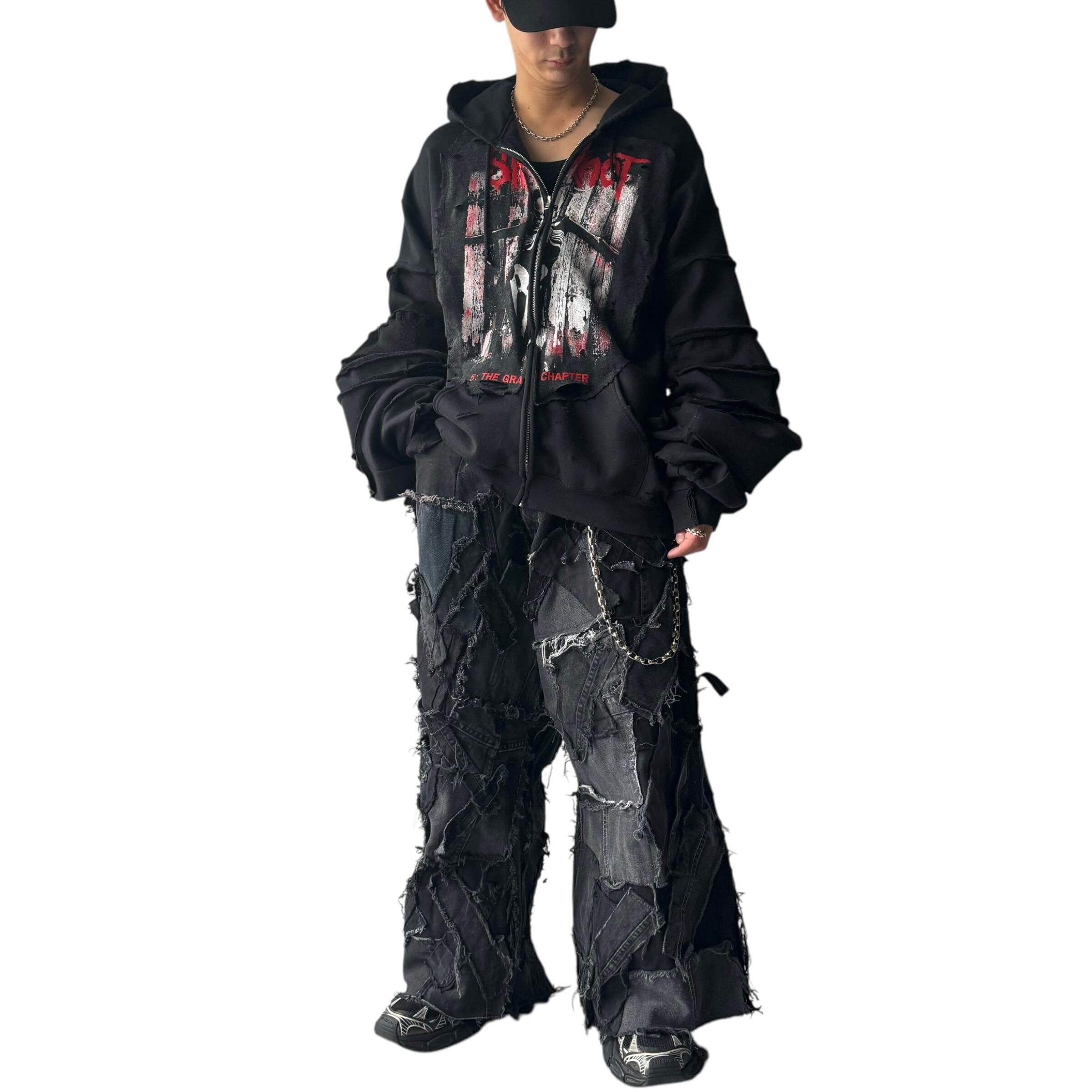 ♾ORIGINAL REMAKE♾ "Slip Knot" design remake custom over sized zip up hoodie sizeXL