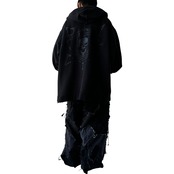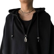 ジップ引手、ドローコード部分にはシルバー925製のパーツが取り付けられ、ポケット部分にはボディピアスを彷彿とさせるようなDカンを無数に取り付けた圧倒的映えな仕上がり◎
