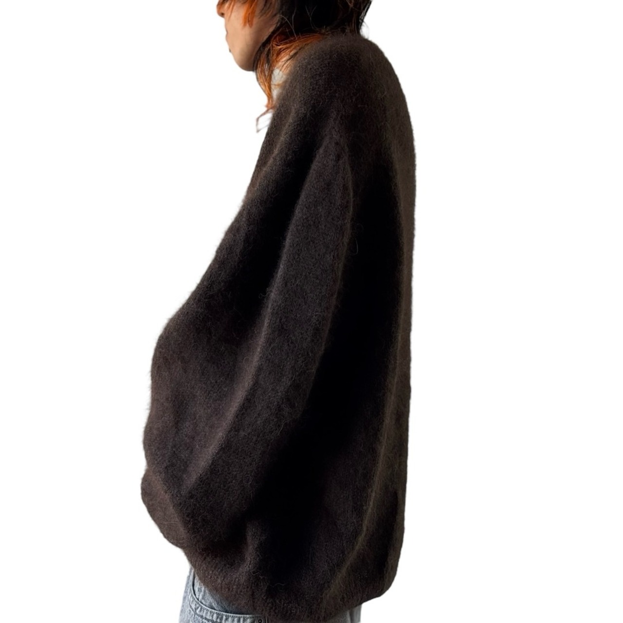 身幅も袖もワイドめなオーバーサイズがモヘアニットでは珍しく、ゆるっと着たい方に抜群なシルエット◎