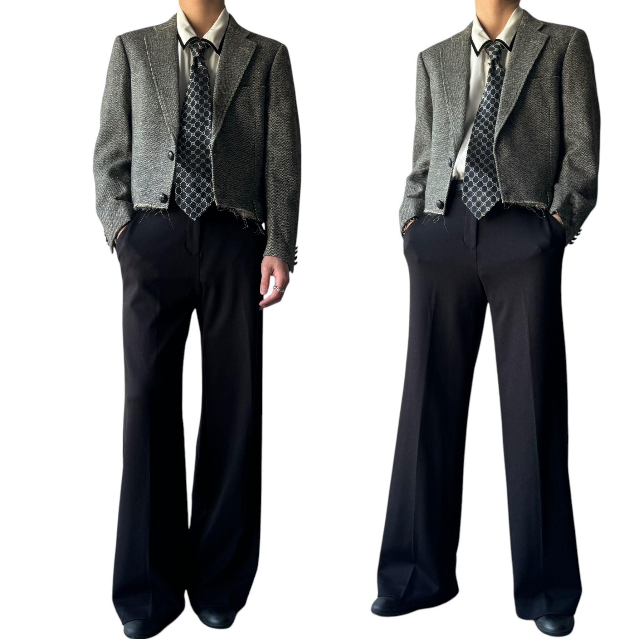 ヘリンボーンツイードでシングルブレスト✨️