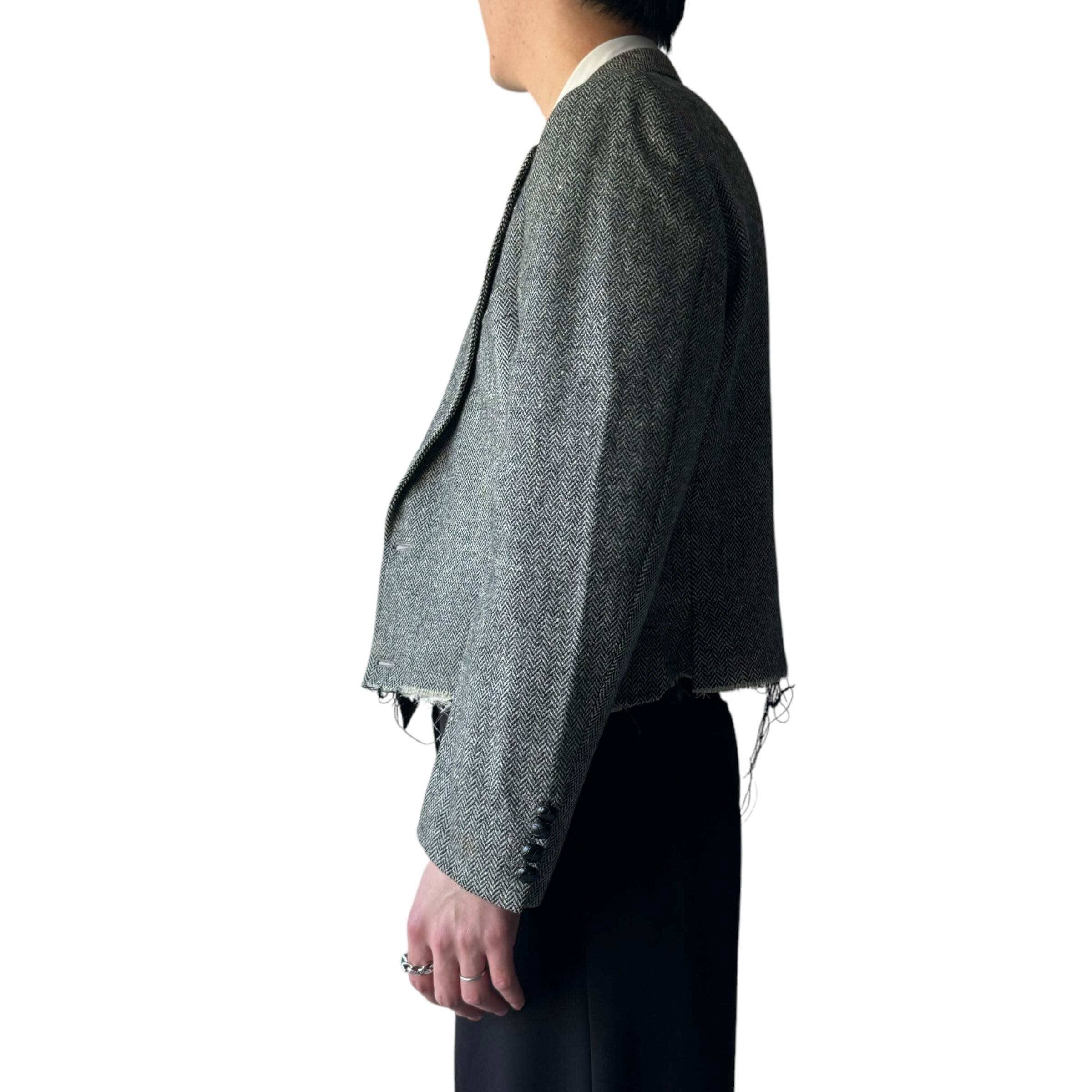 herringbone tweed design cut off design jacket