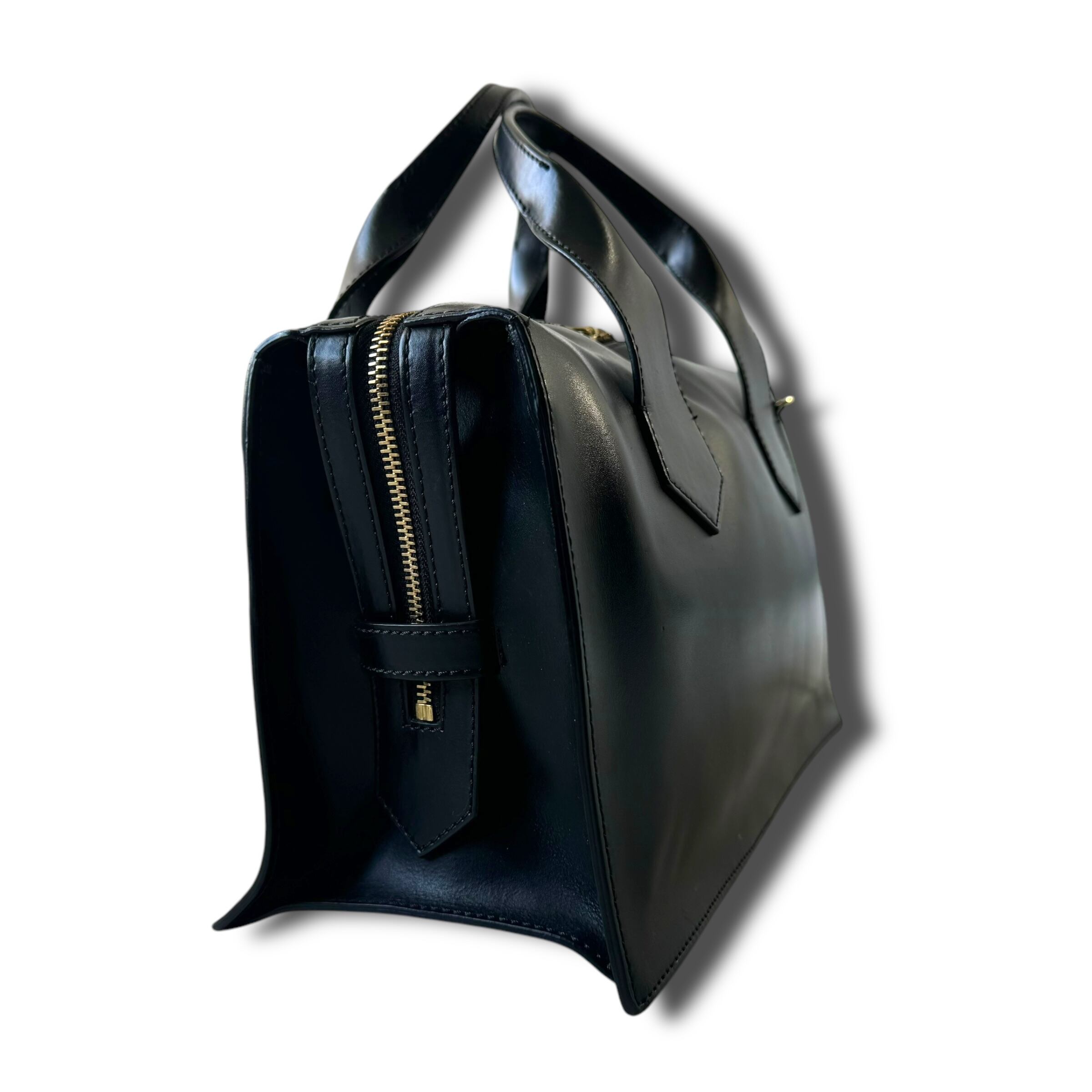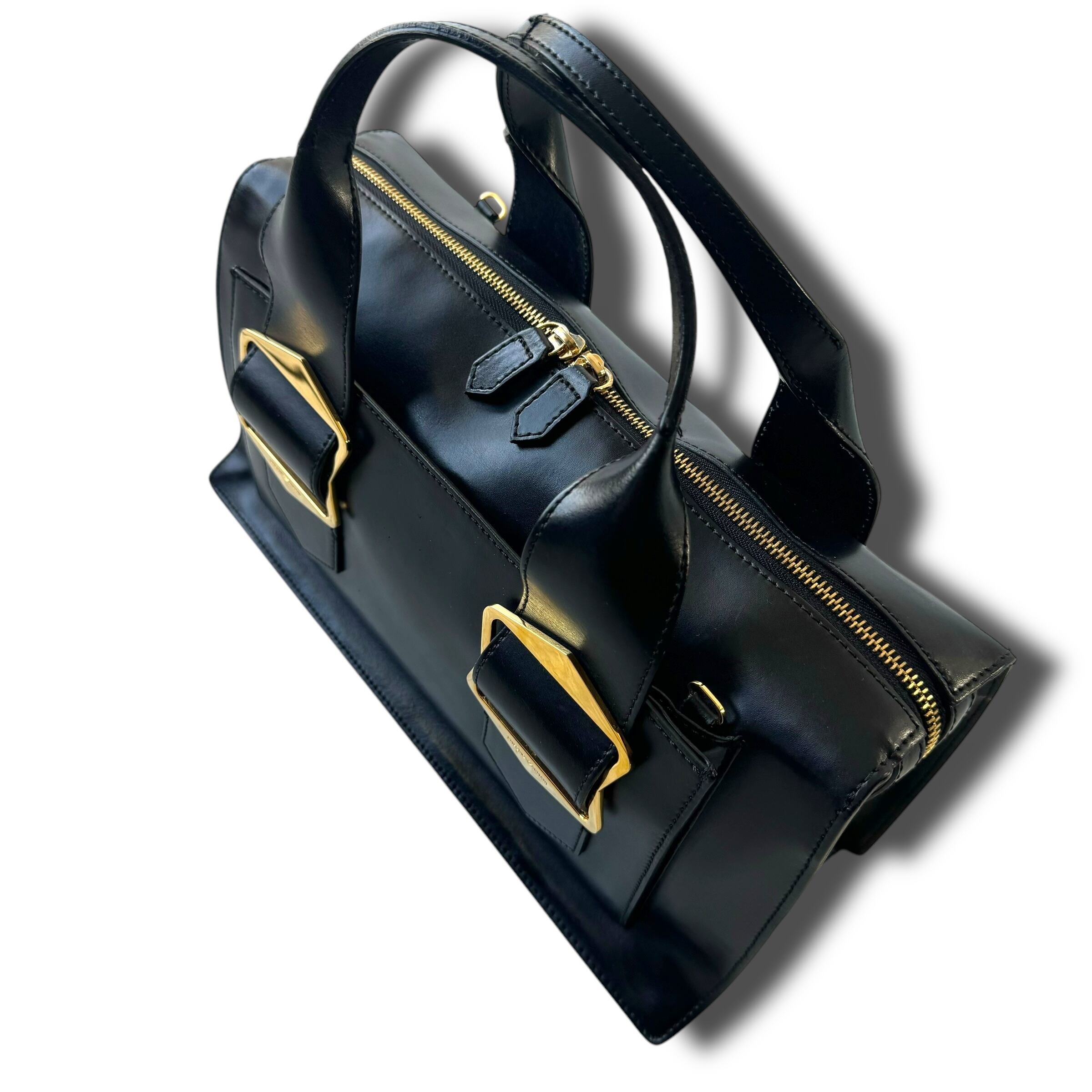 ガチっとワイドフォルムでジップをはじめとする各金具のパーツがゴールドトーンで統一されおりメリハリのあるモードなコントラストかめちゃくちゃカックイイ。。。