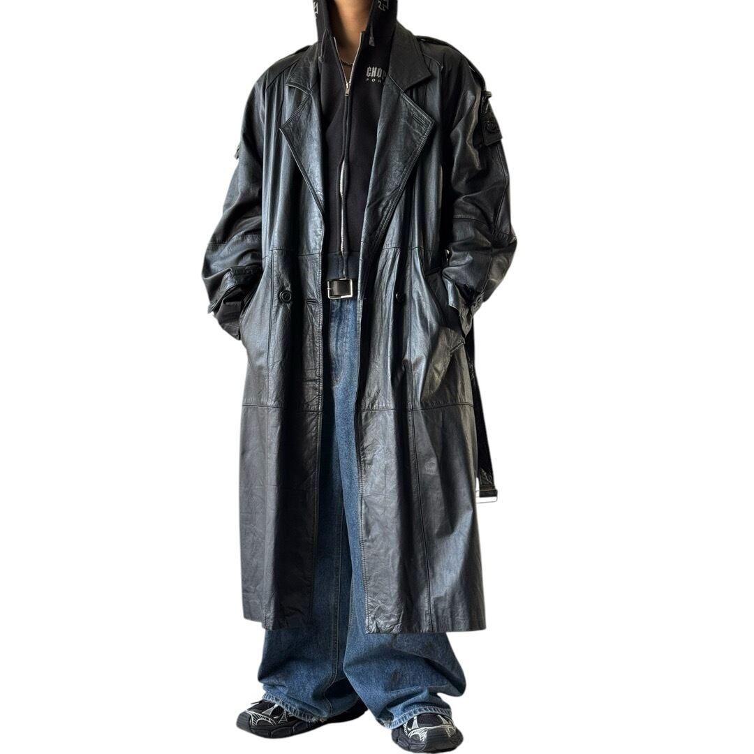 ♾️AGGIO♾️ double breasted leather trench coat size L