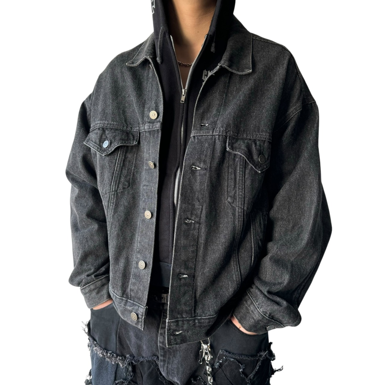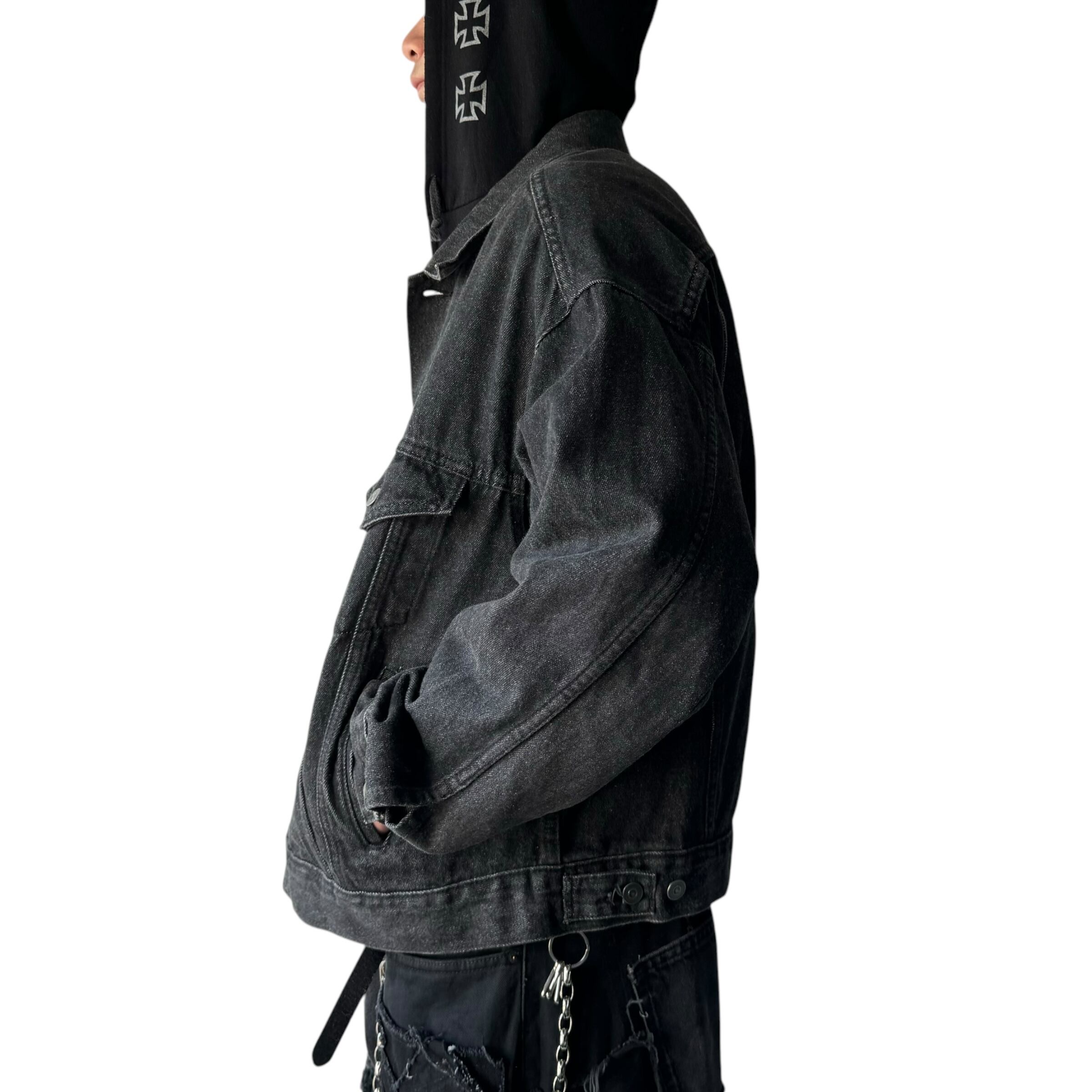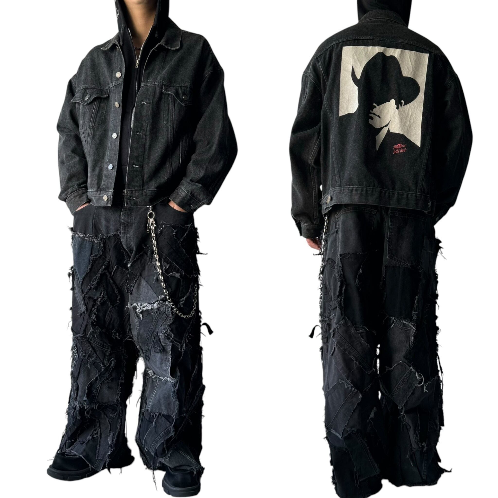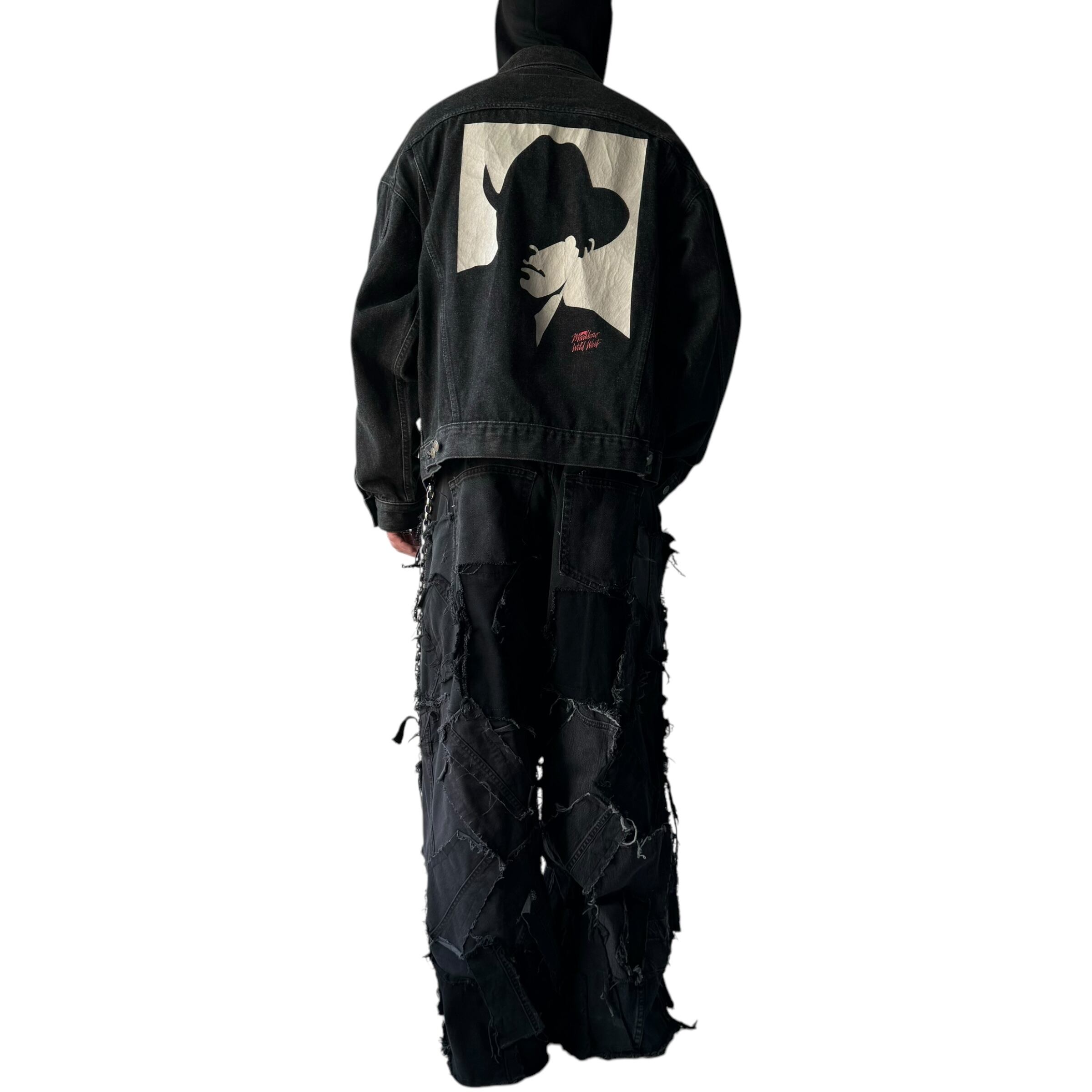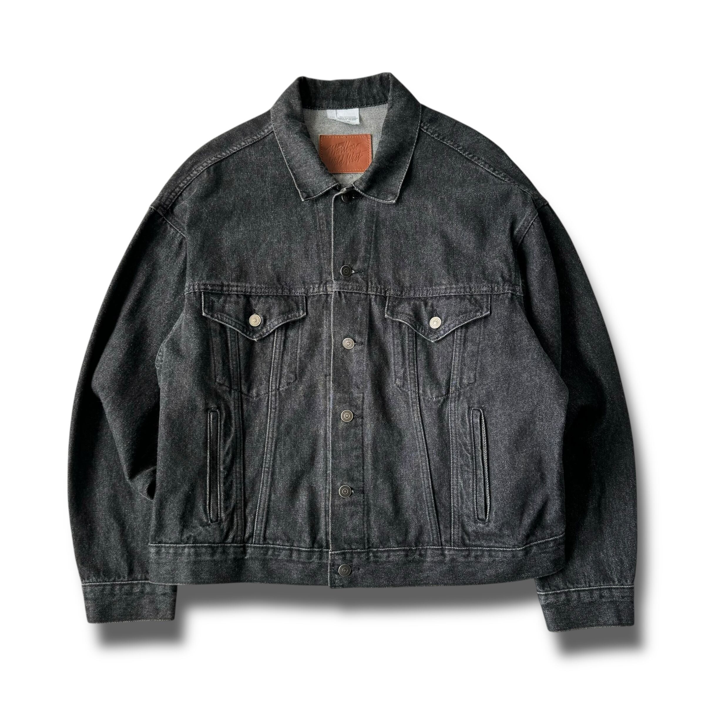 フォースタイプのブラックデニムトラッカージャケット!ボタンやディテールがメゾンブランドを彷彿させ、背中には一目だわかるマルボロマンの出立ち◎
