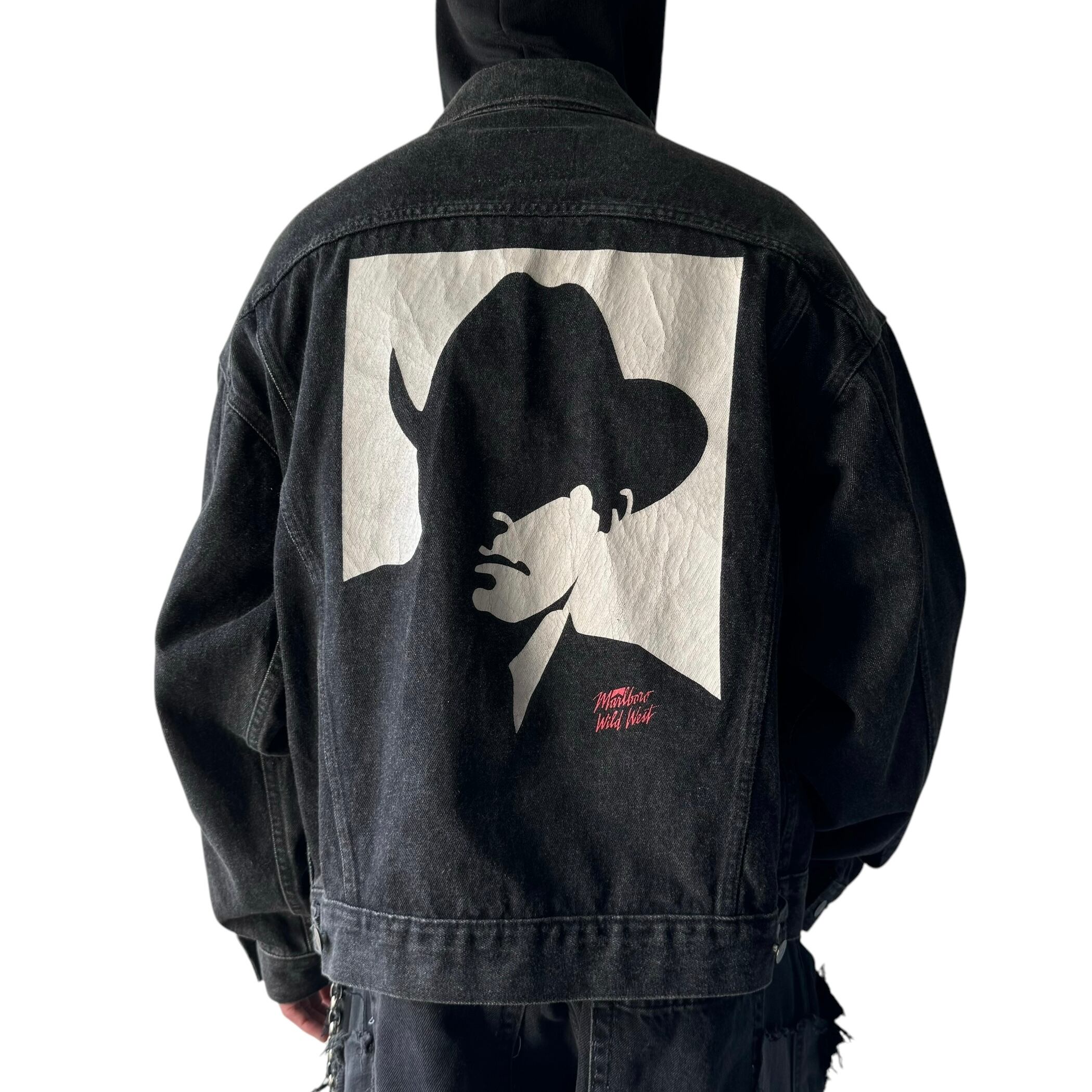 ♾90's Marlboro♾ design graphics black denim tracker jacket MADE IN CANADA