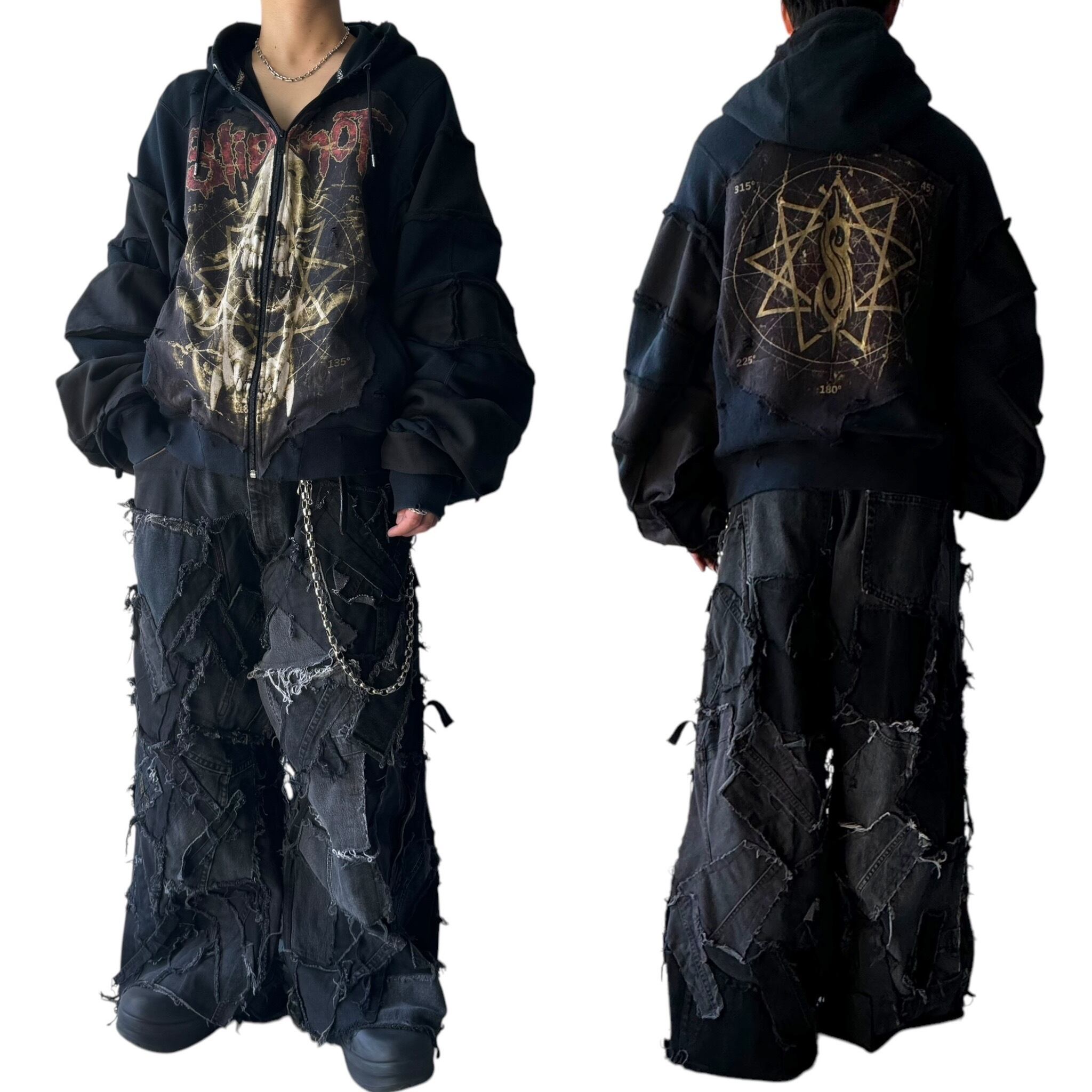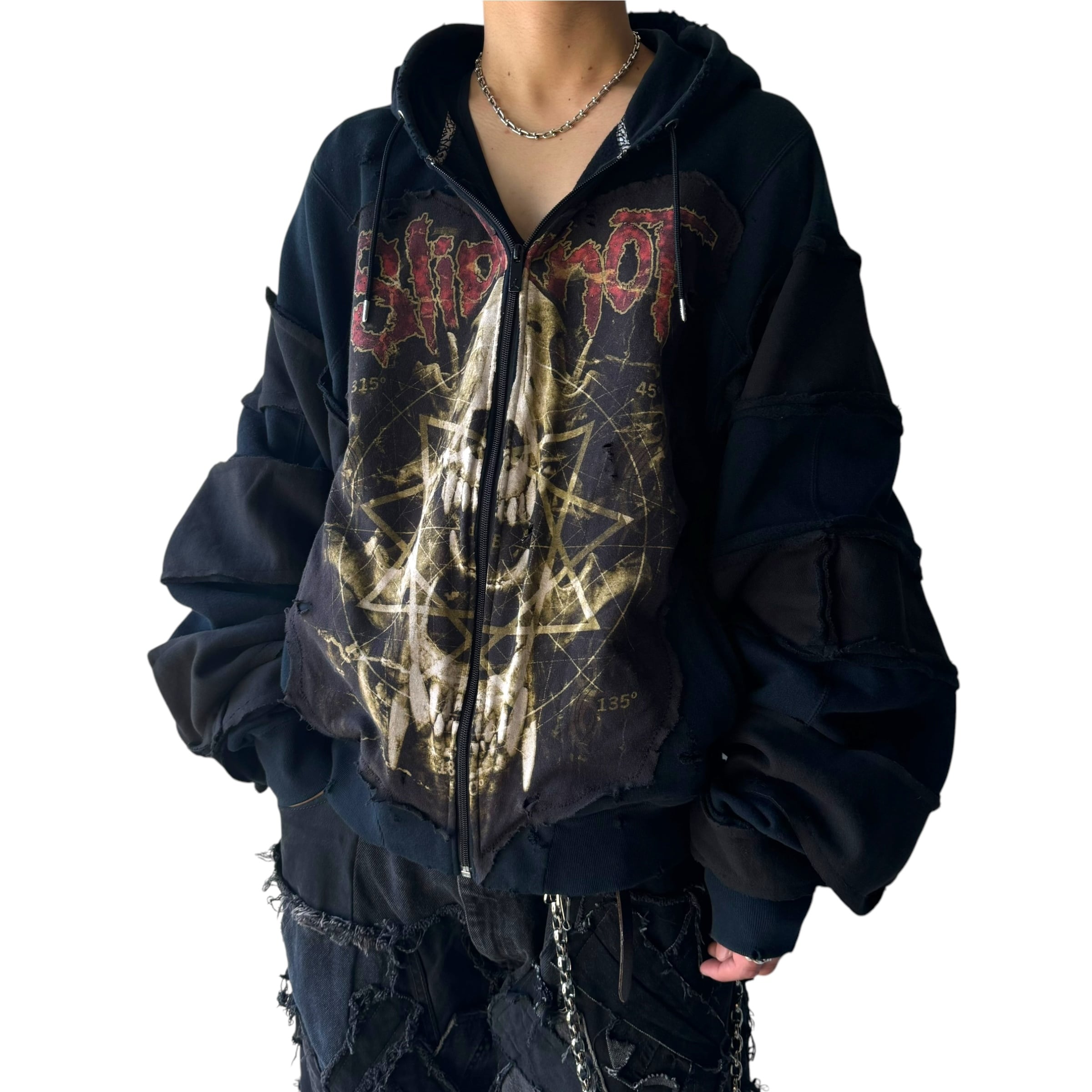 ♾ORIGINAL REMAKE♾ "Slip KnoT" remake custom sleeve over sized zip up hoodie