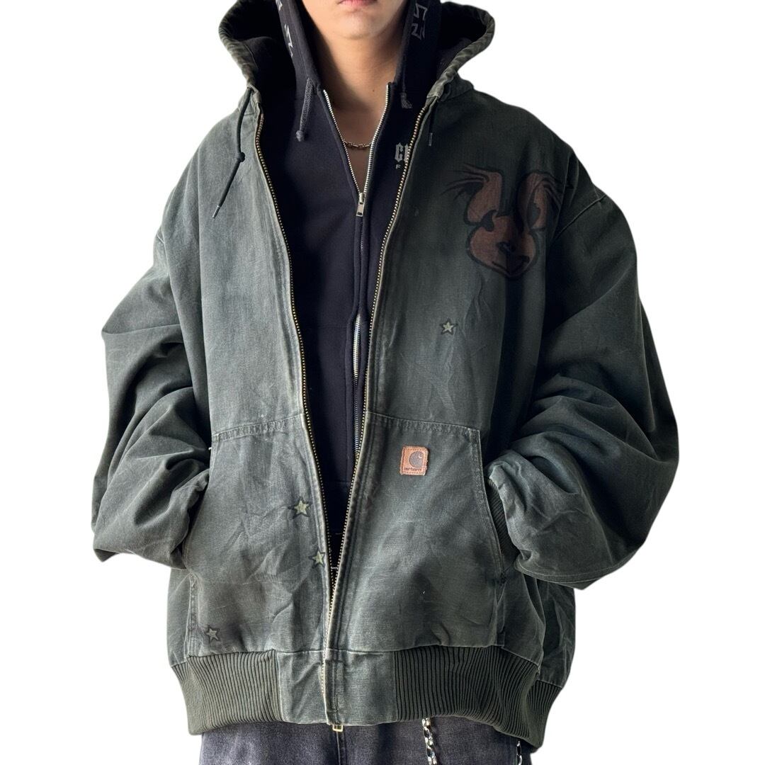 ♾old carhartt♾ hand painted custom over sized active jacket size 3XL Tall