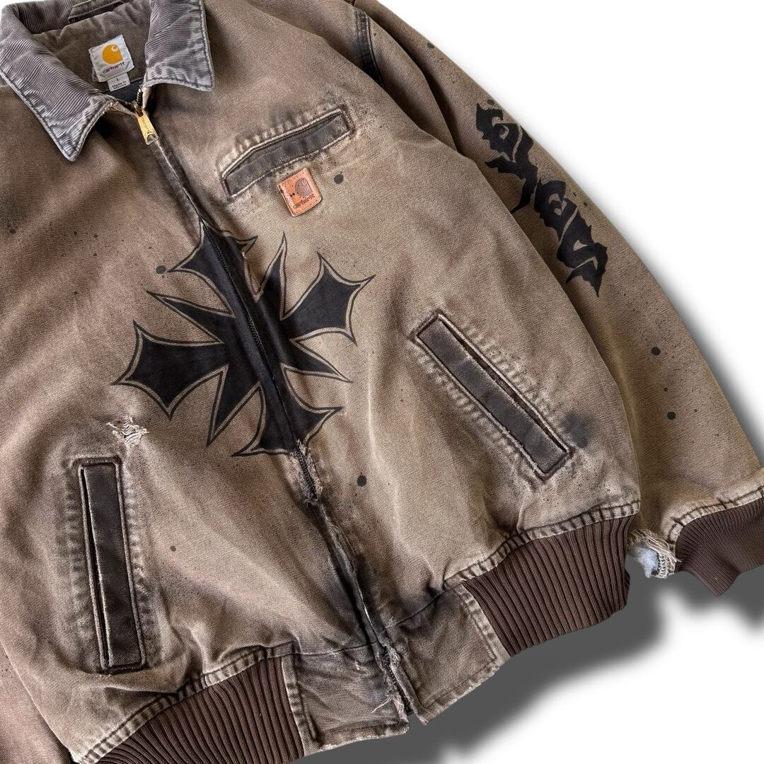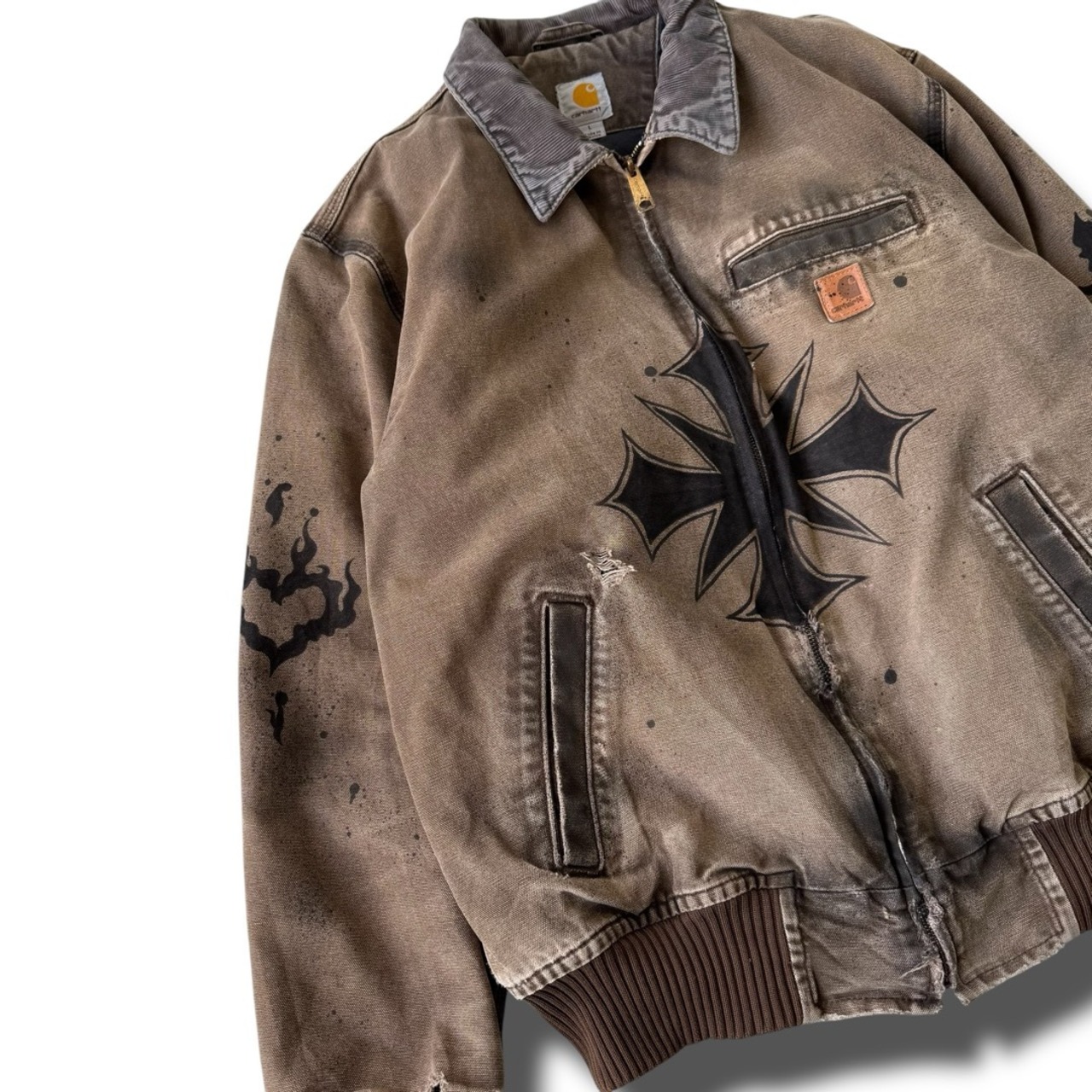 ♾old carhartt♾ hand painted custom good faded detroit jacket size L