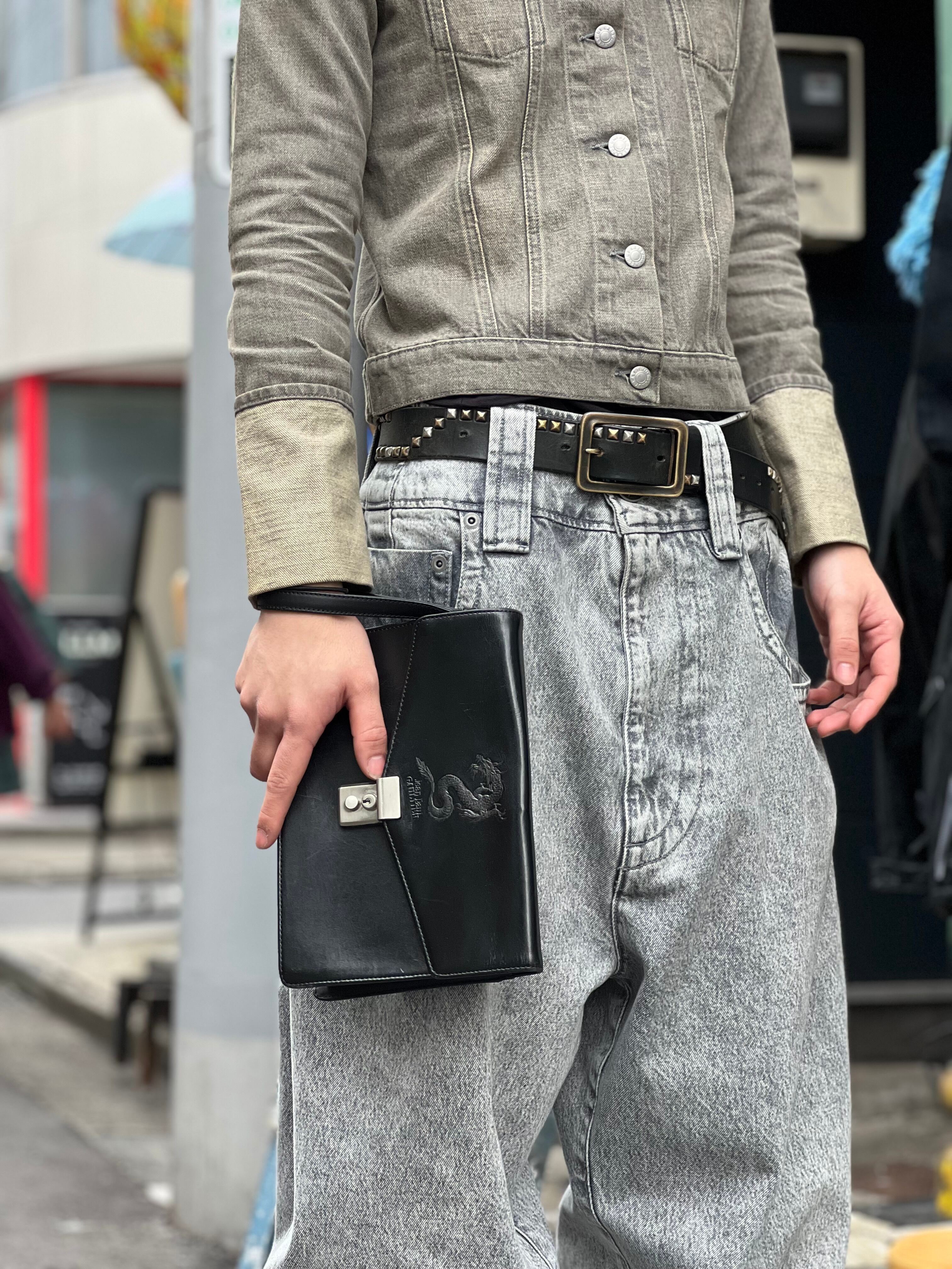 Jean Paul Gaultierのロゴと龍がエンボスされた最高にクールで雰囲気抜群ゴルチエのクラッチバッグ。