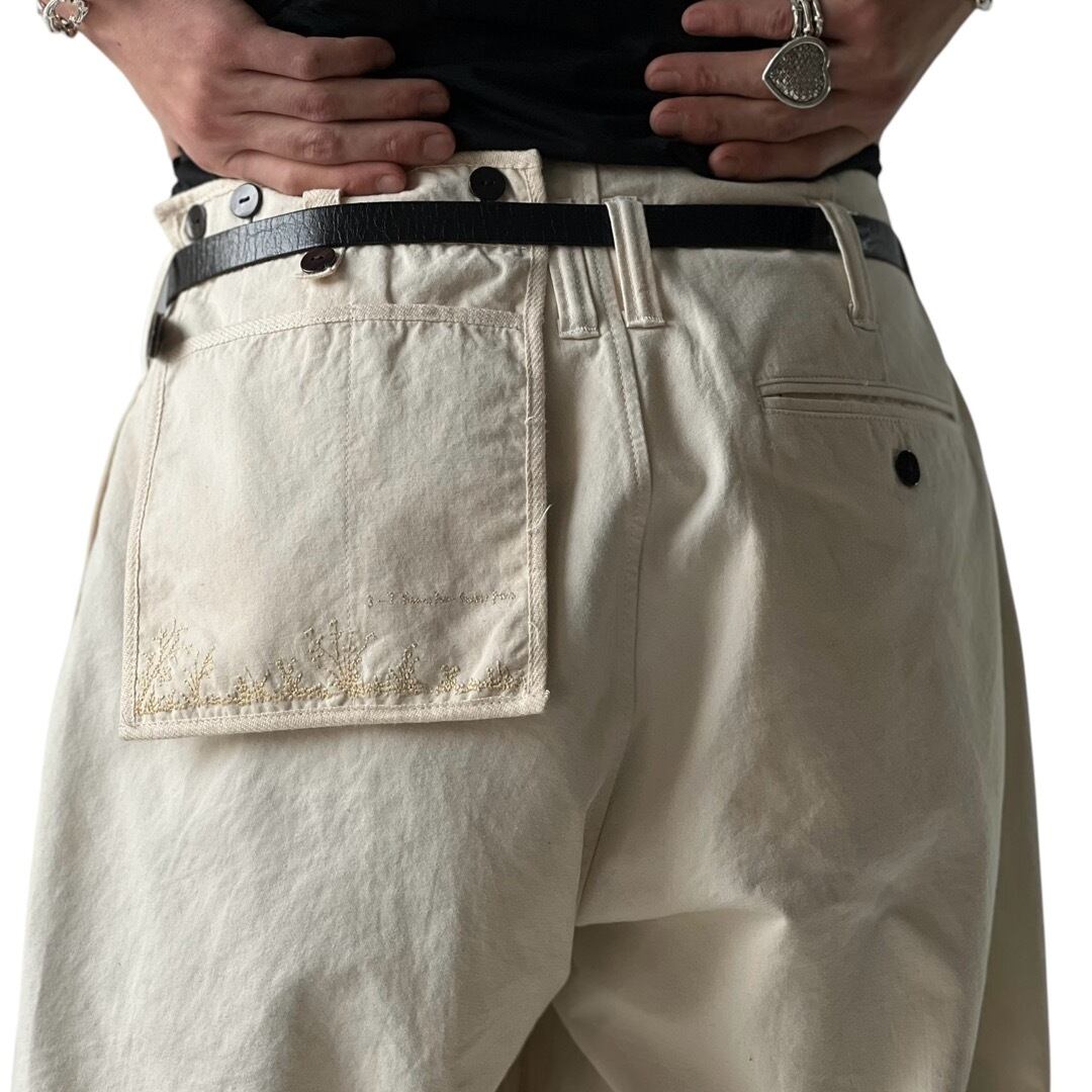 【amachi.】Embroidery Pocket detail Design tuck work pants