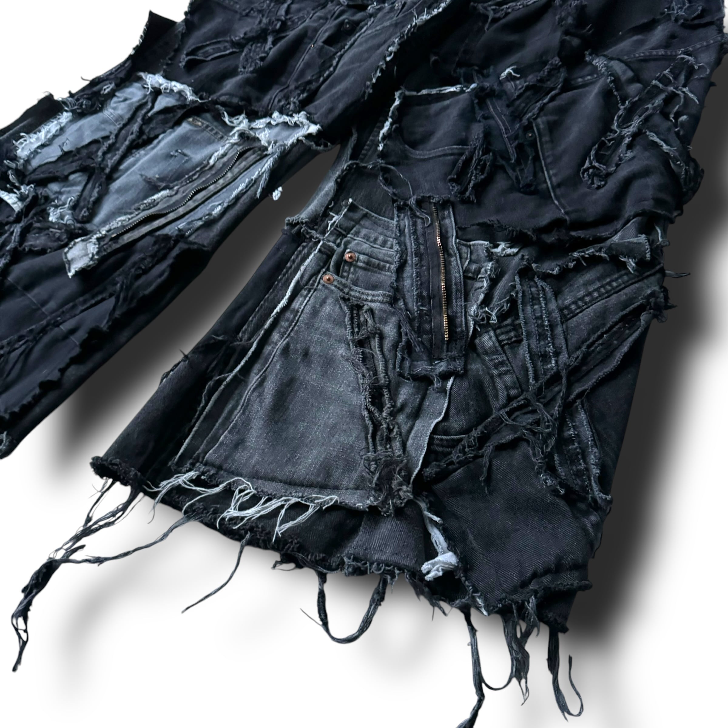 ♾REMAKE DESIGN USED♾ reconstruction custom mega wide black denim pants