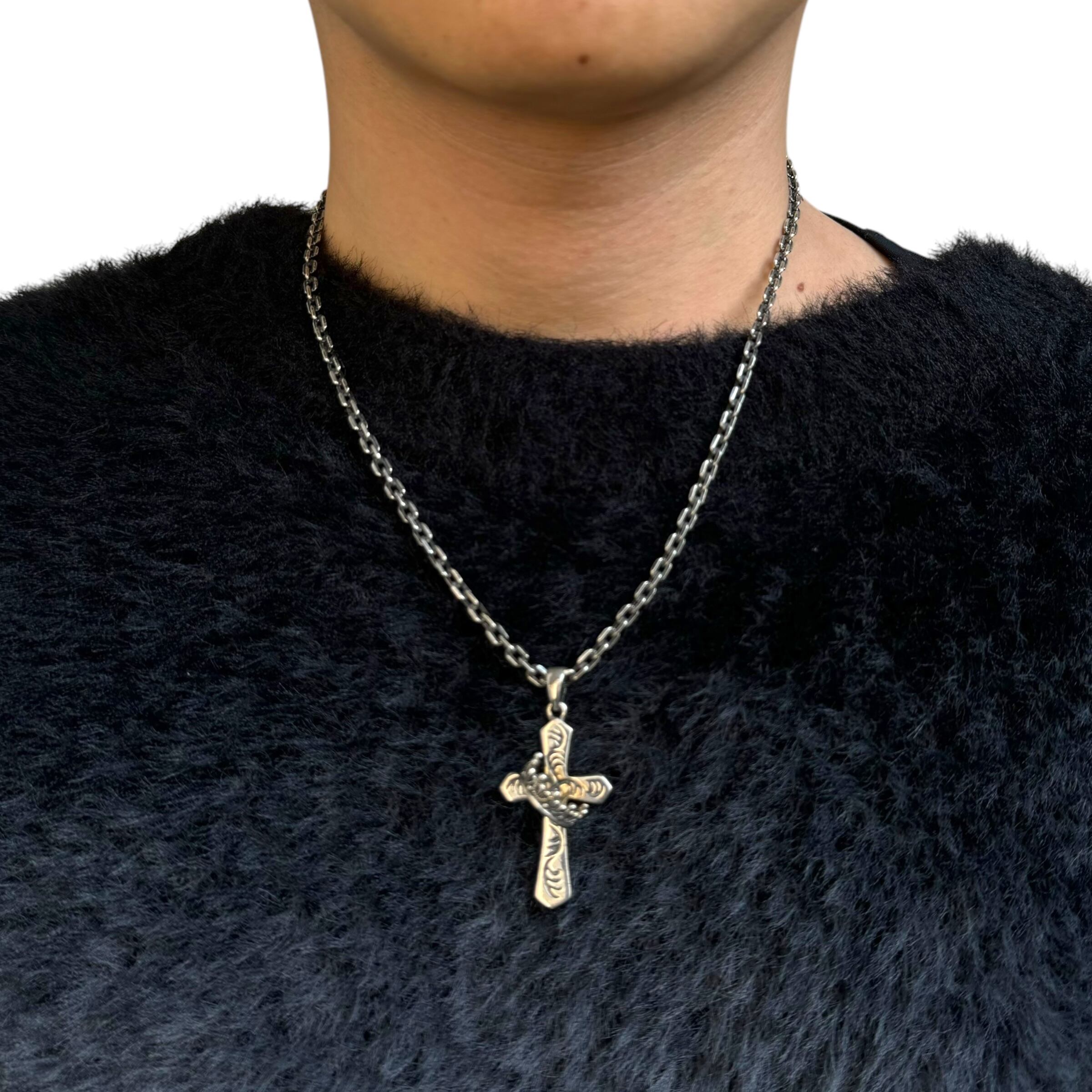 クロスにクラウンがドッキングされたスペシャルコンビネーションデザインのシルバーネックレス‼️
