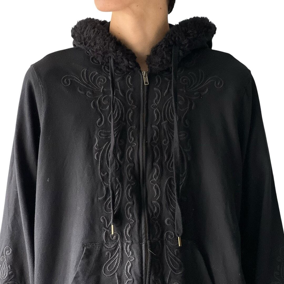 【avenue】"Embroidery pattern" Fur swiching cotton zipup hoodie