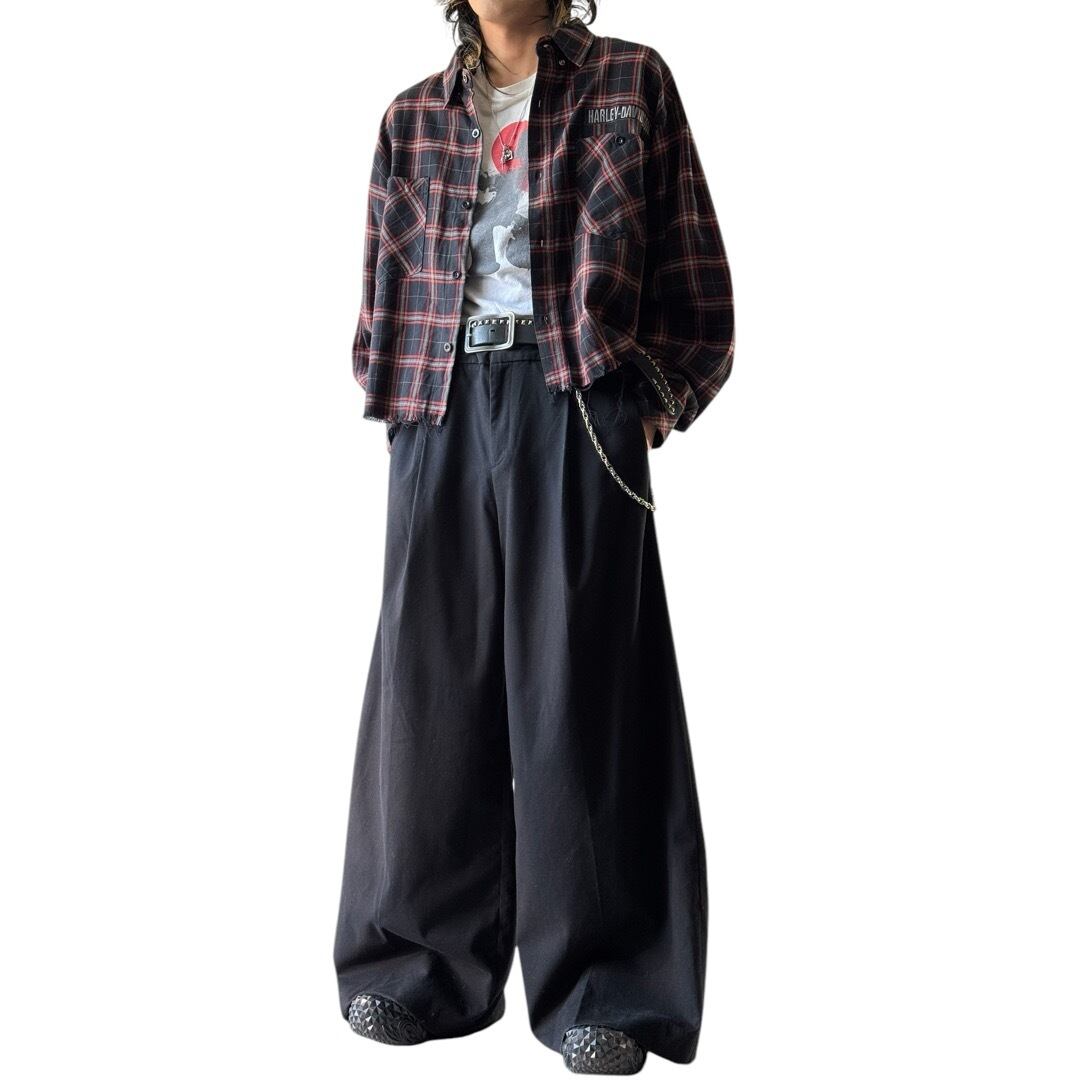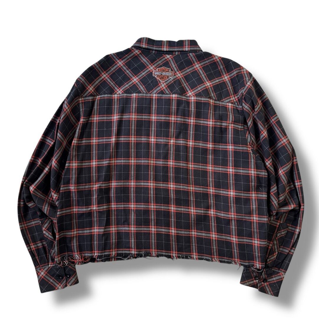 裾がカットされた短丈Harley-Davidsonのチェックネルシャツ‼️