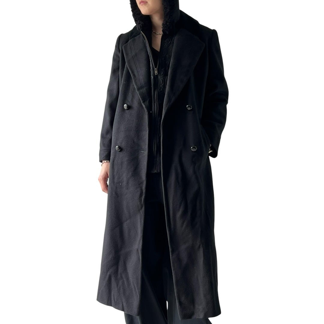 【80s ALORNA】"MADE IN U.S.A." Velours collar swiching Double chesterfield Long coat