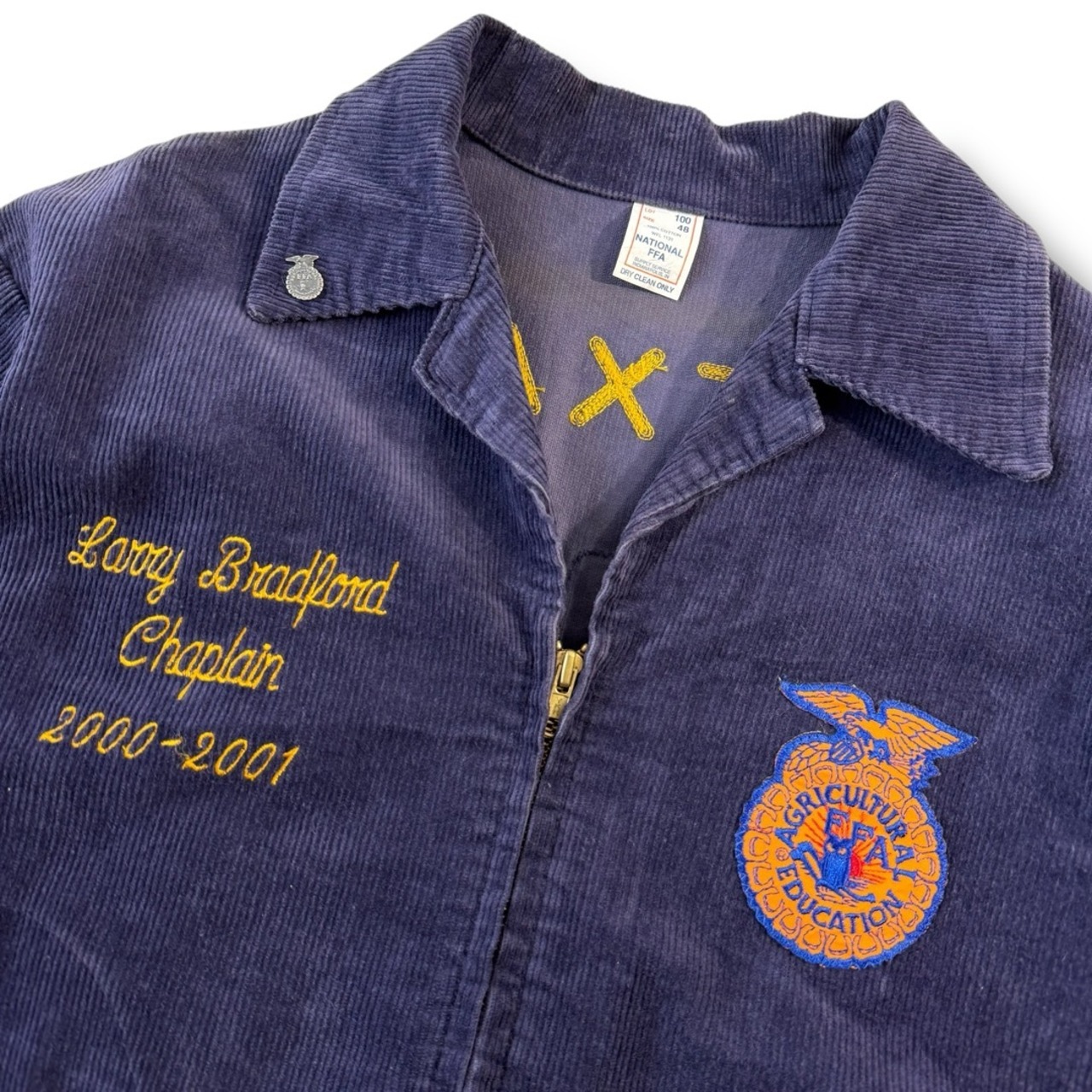 FFA(Future Farmers Agriculture)ジャケットは1928年設立、アメリカの国立農業学校のユニフォームウェアで州ごとに違う刺繍、着用者の名前が施されているジャケットです。