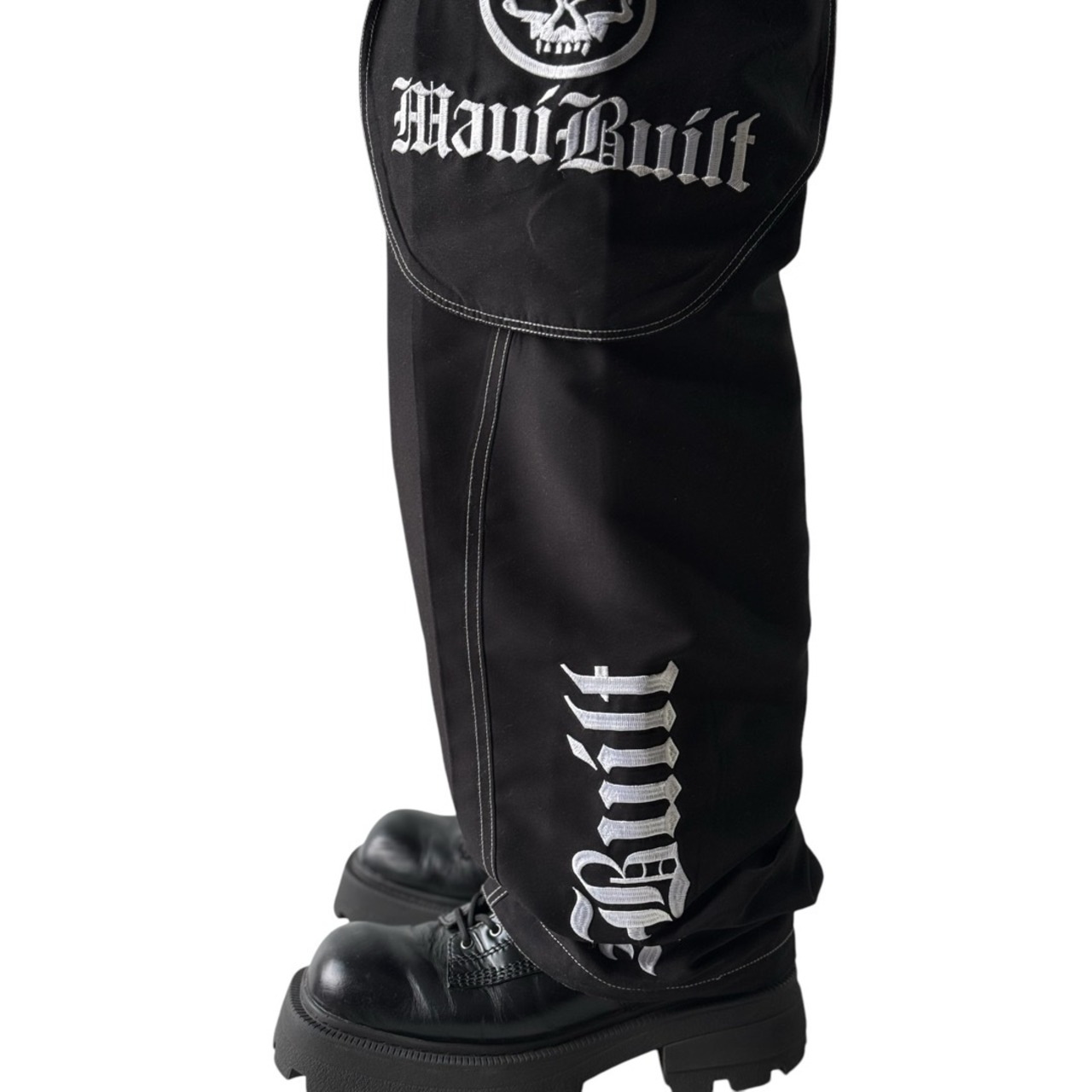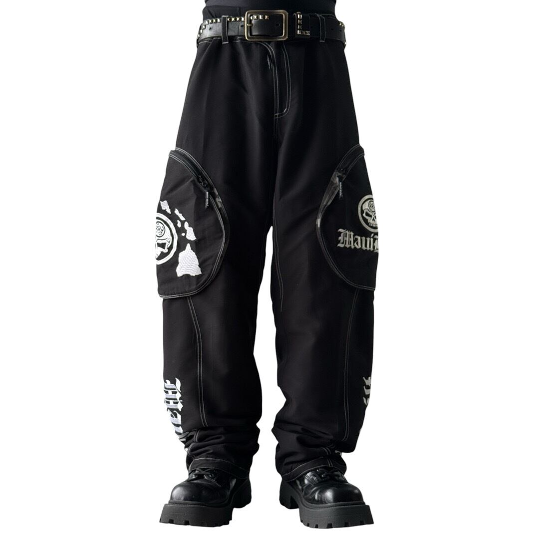 特徴的な両サイドの円状のビッグポケットにはそれぞれブランドネームと髑髏の刺繍が施されており片方は地球儀の様にも見えるデザインがユニークでオモロい‼️