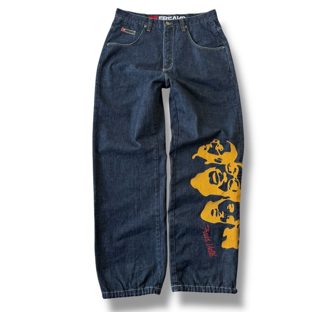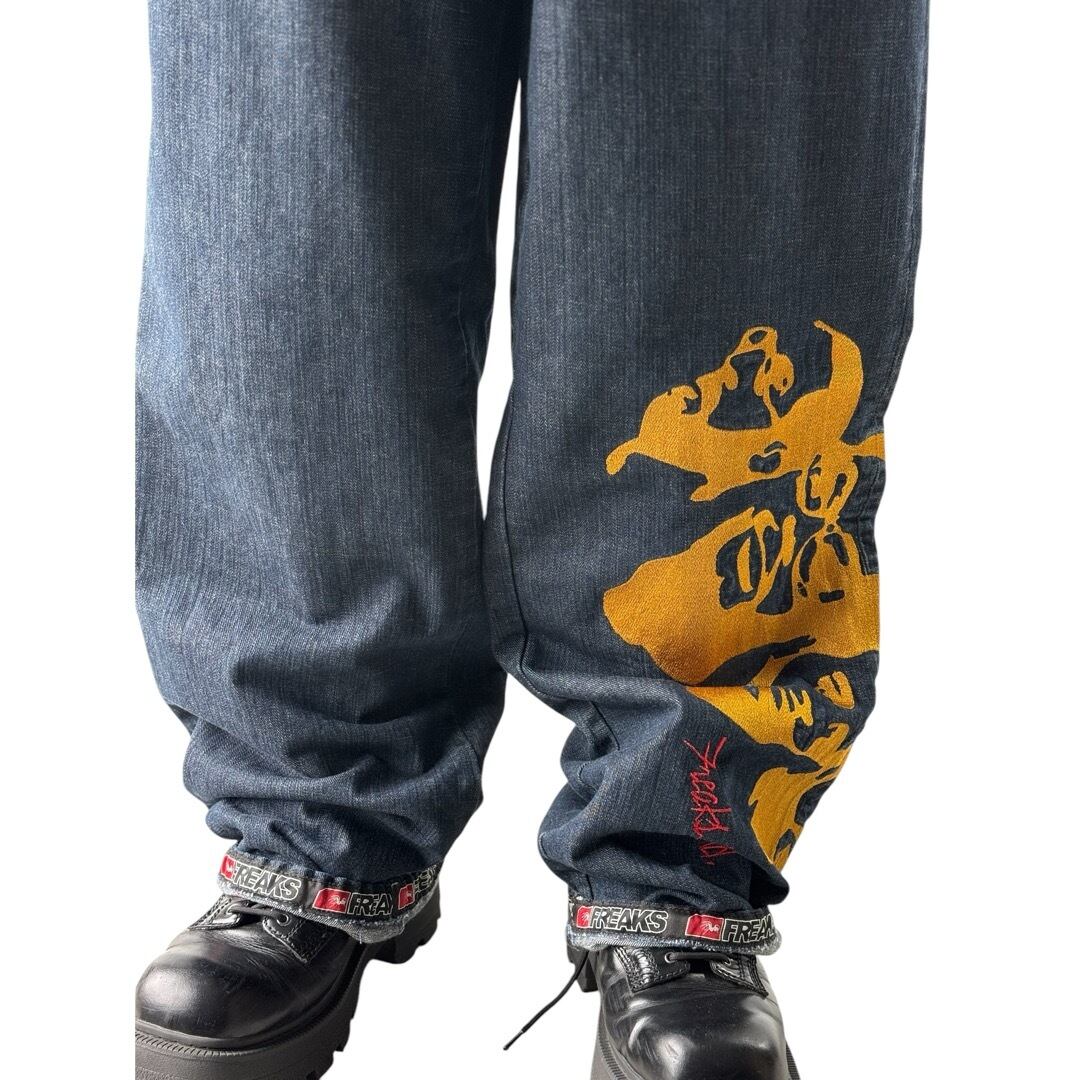 ♾FREAKS♾ big embroidery design wide buggy denim pants size34