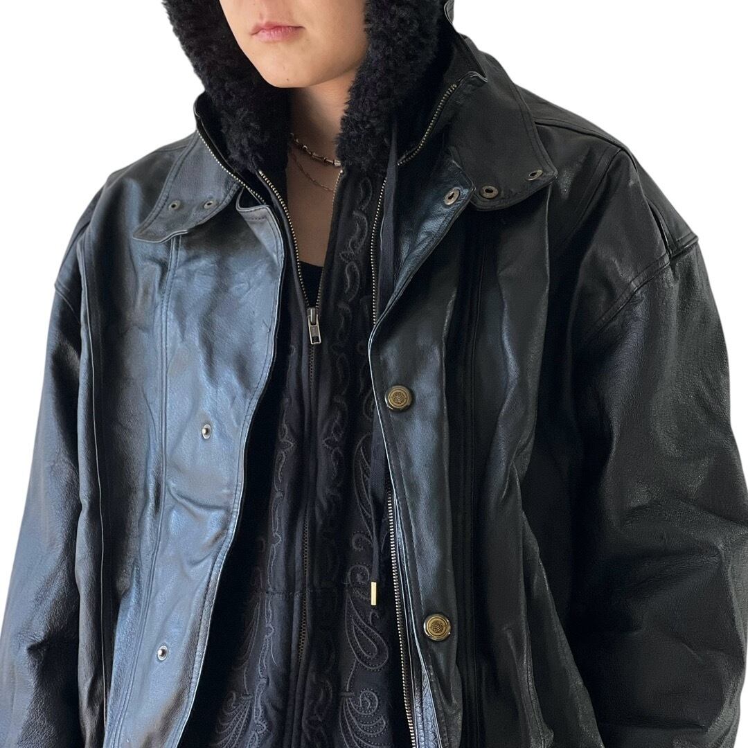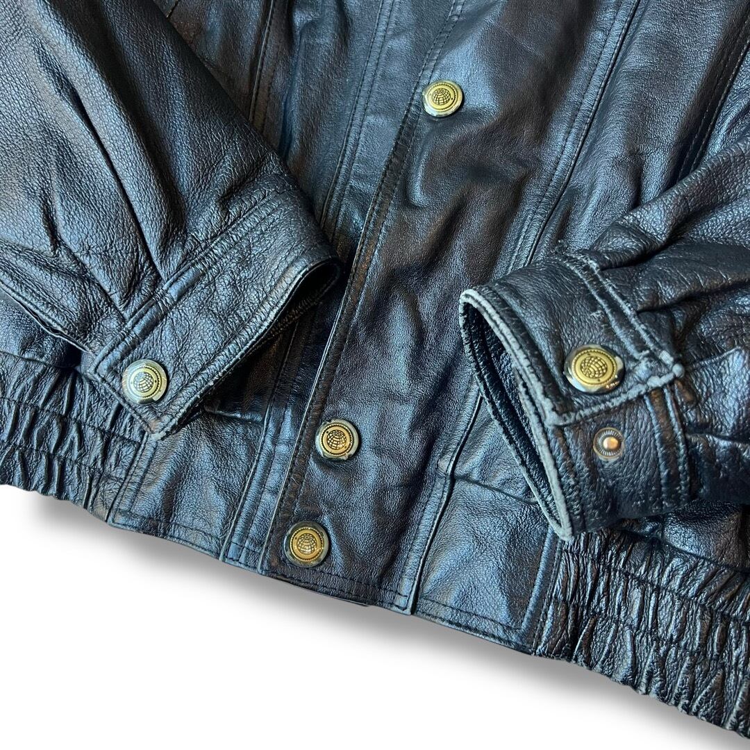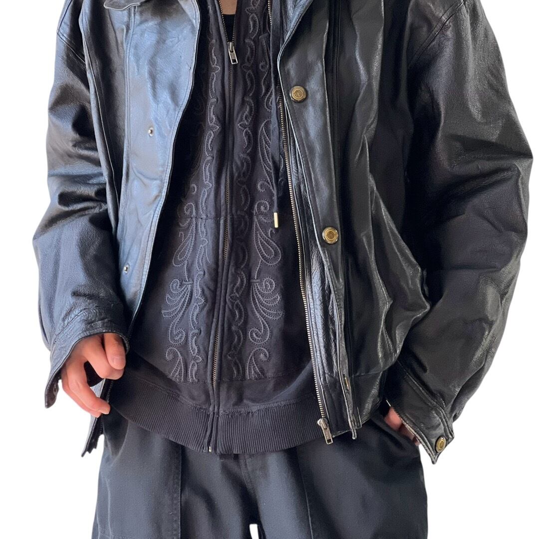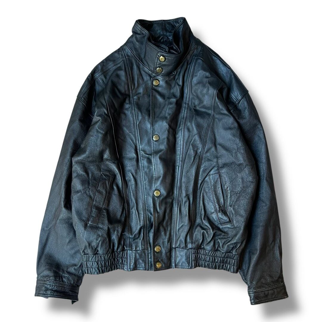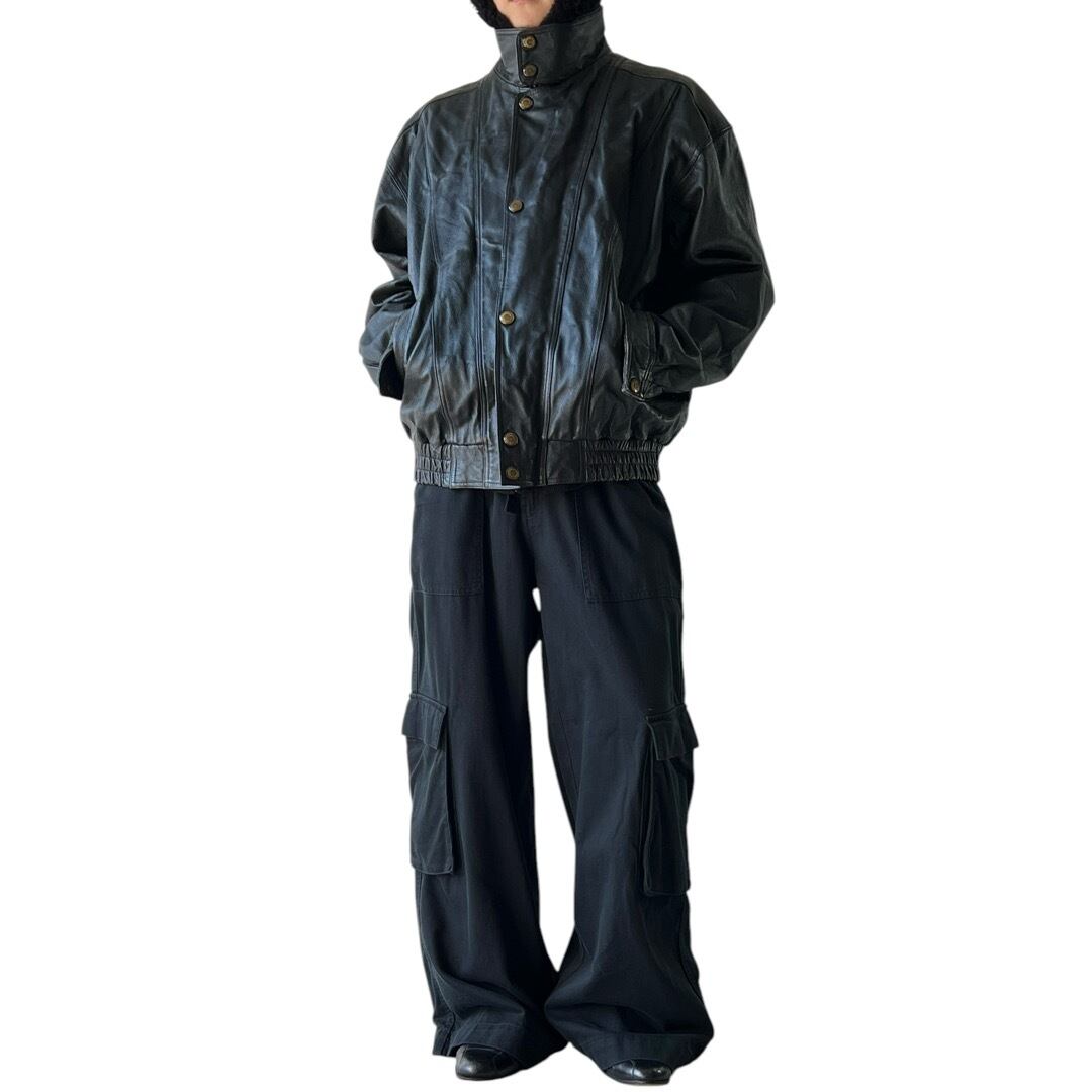 レイヤードデザインでハイネックタイプの極上デザインレザージャケット。