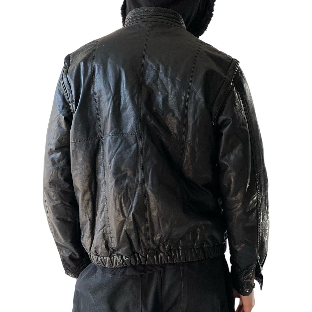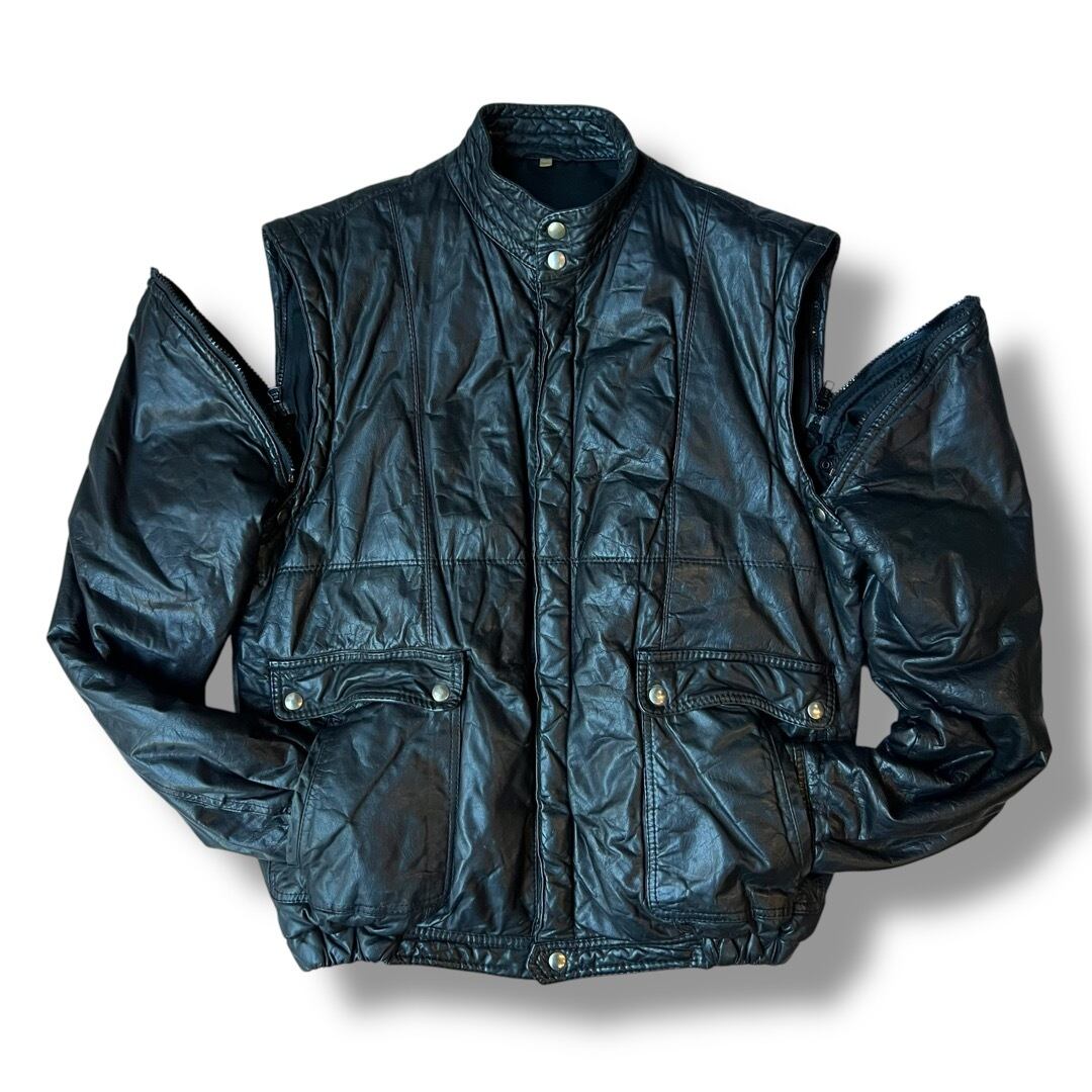 袖も取り外しの出来るギミックの効いたハイネックレザージャケット。
