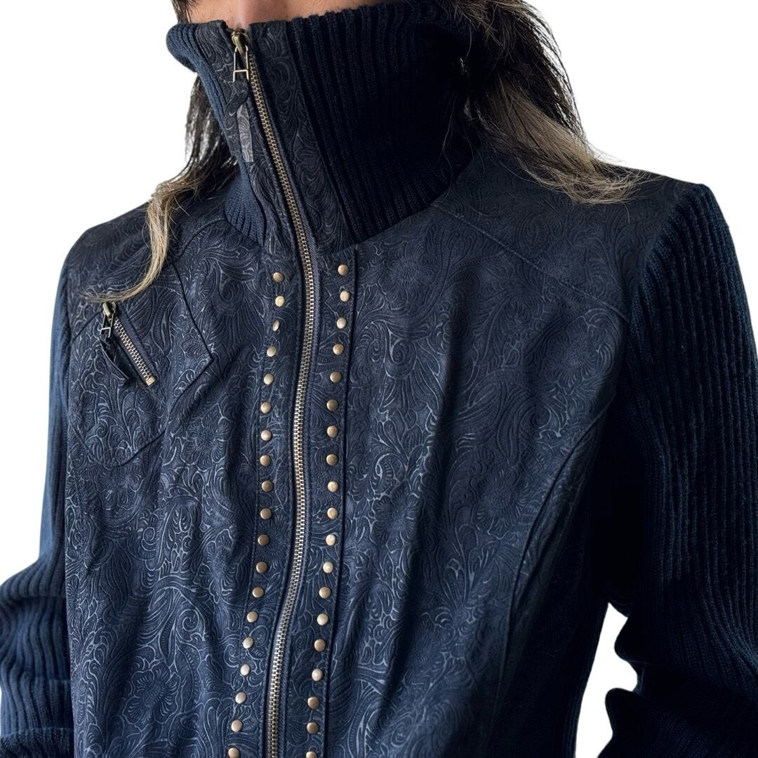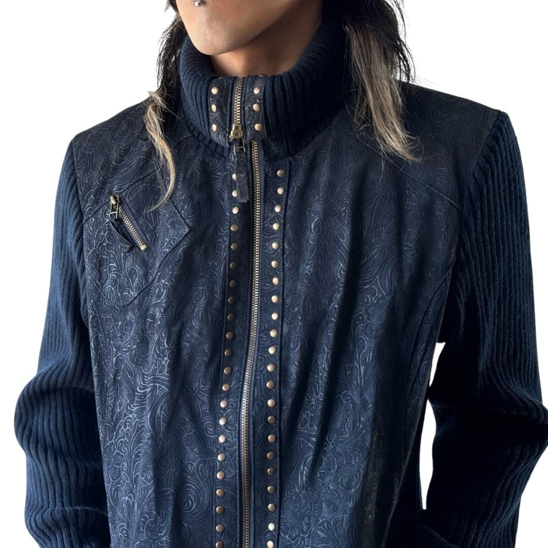 ♾NANCY BOLEN♾ flower patterned studs combination suede switching design drivers knit sizeXL