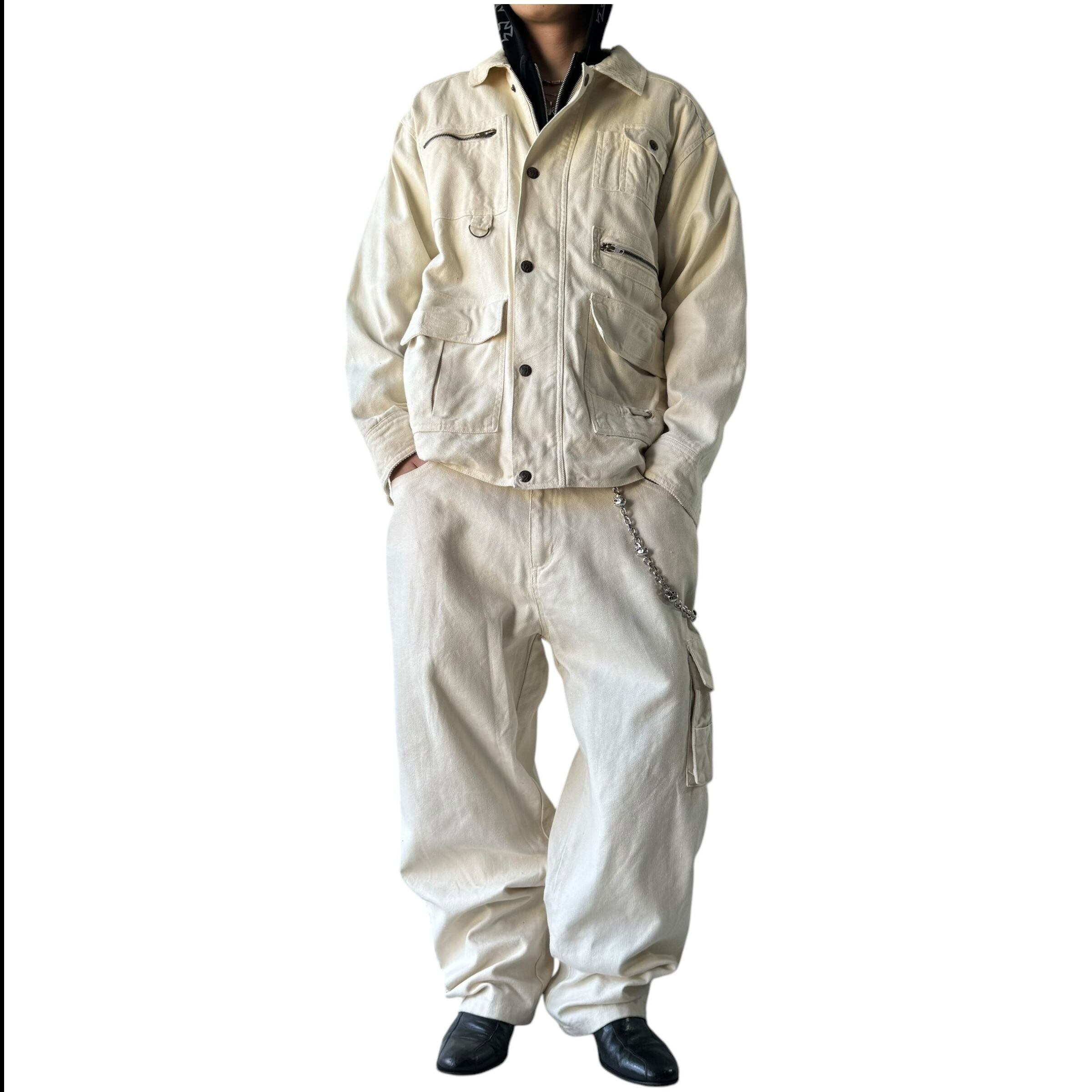 ジャケット、パンツどちらも単体同士での汎用性も抜群で襟のコーデュロイのスウィッチングだったり部分的に取り付けられたDカン、ポケットの洒落たディテールなど戦闘力高めな無二な仕上がりが圧倒的❤︎