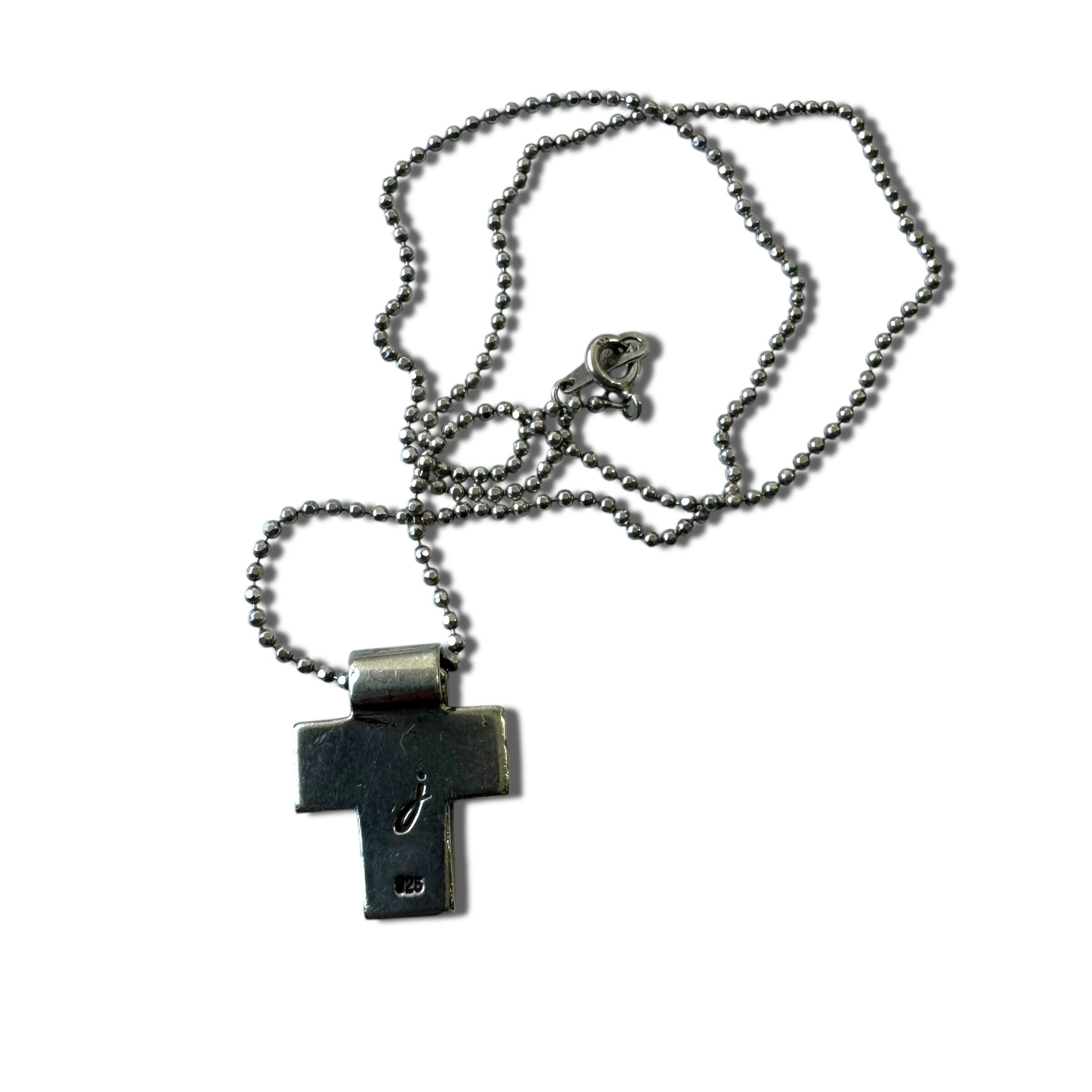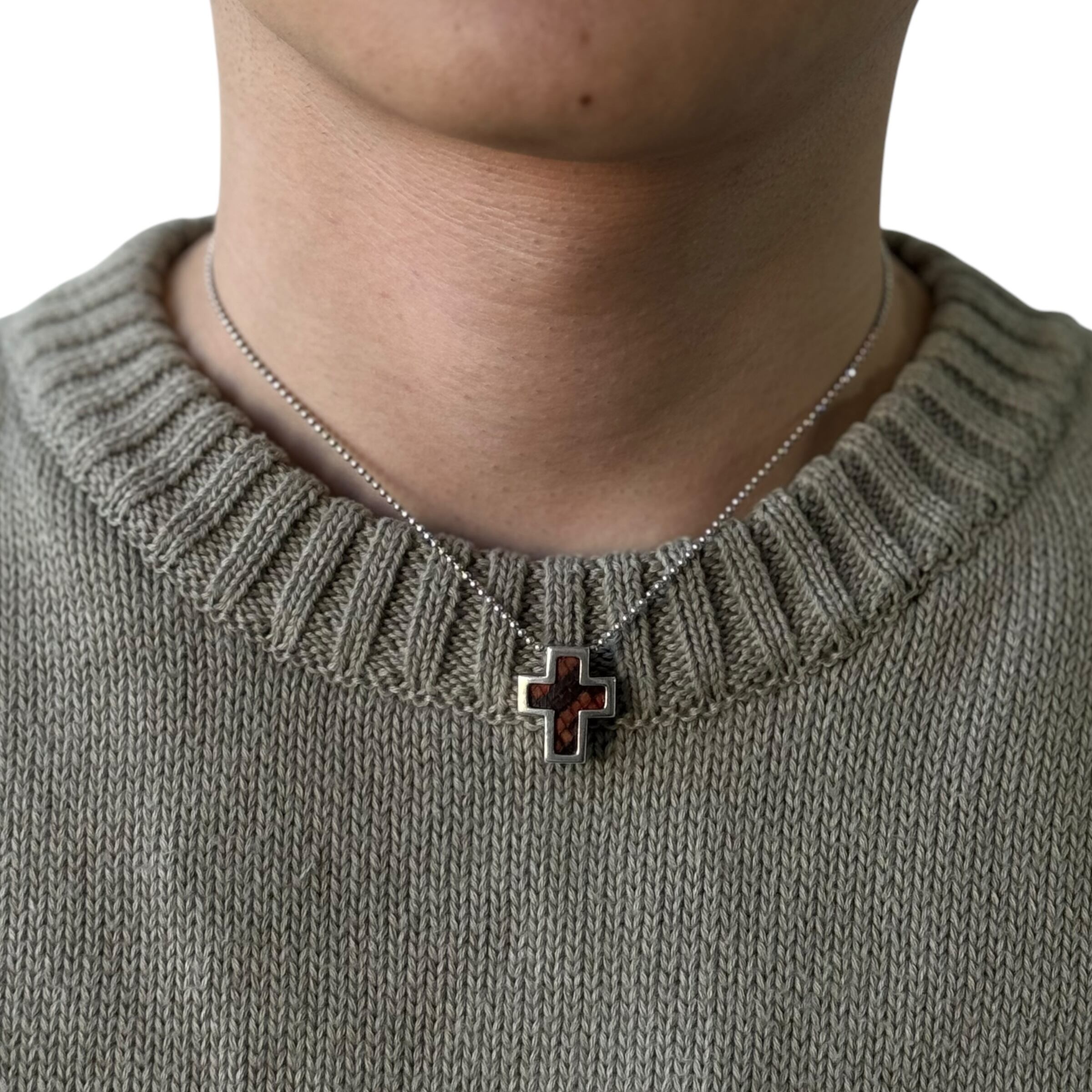 クロスモチーフのパイソンレザーコンビネーションデザインシルバーネックレス✨️